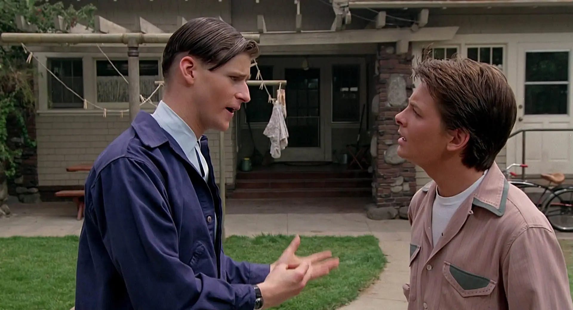 Despite some dismal reviews and the modest box office take of 1941, Spielberg continued to mentor Zemeckis & Gale. He served as executive producer on Zemeckis’ directorial debut, I Wanna Hold Your Hand (1978), another comedy about mass hysteria, this time in New York during the Beatles’ appearance on The Ed Sullivan Show in 1964. Zemeckis co-wrote the script with Gale, as he would his next picture as director, using a used car dealership in Arizona to stage the hijinks of Used Cars (1980). Steven Spielberg and John Milius served as executive producers on the latter, but it would take repeated viewings on cable television or videocassette for either film to build an audience. Rummaging through boxes in his parents’ basement in St. Louis, Gale found his father’s high school yearbook, where he discovered that his dad had been president of his graduating class. Gale belonged to the generation that had led the charge to abolish student government, and wondered whether he’d have related to his father at all if they’d crossed paths as teenagers. Gale returned to Los Angeles and shared his epiphany with Zemeckis, who thought his writing partner had the basis for a clever time travel story: a teenager goes back in time and meets his parents as teenagers.