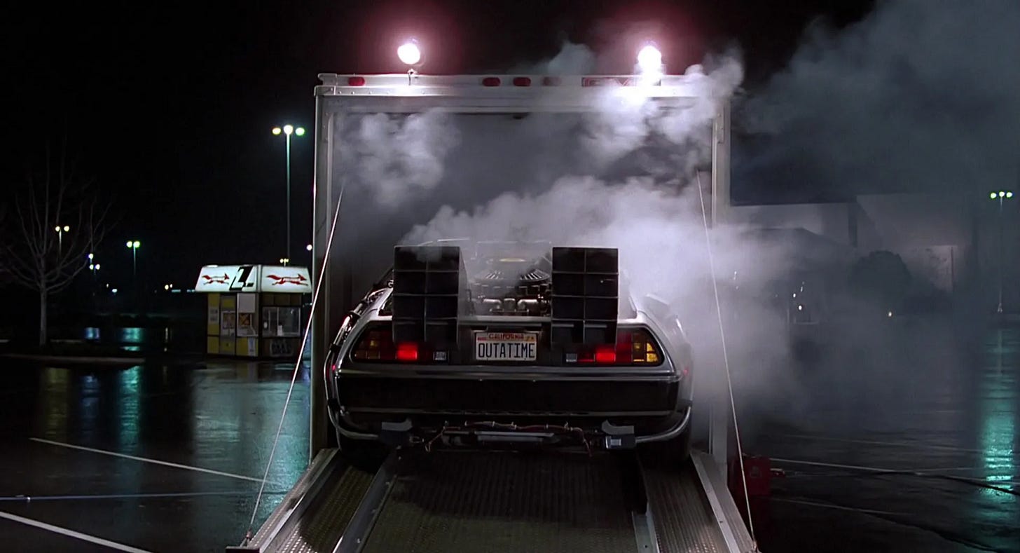 Zemeckis & Gale began writing Back to the Future in September 1980. In their first draft, the time machine resembled a car wash, which Marty McFly, driven to suicide, steps into because he belives the contraption will electrocute him to death. The writers later hit on the idea of the time machine being a car, a vehicle capable of achieving dangerously high speeds, but unlike K.I.T.T. of TV’s Knight Rider, possesses some charm or eccentricity. They chose an ‘81 DeLorean, solidifying the notorious American automaker John DeLorean a foothold in popular culture forever. Early drafts climaxed with their time traveling teenager Marty McFly driving the DeLorean through an atomic test in Nevada and using the explosion to get back to the future. Considered cost prohibitive, Zemeckis & Gale arrived on harnessing a bolt of lightning as it strikes Hill Valley’s old clock tower, which connected their climax with the clock motif they’d established. Virtually everyone the Bobs pitched Back to the Future to in the early 1980s passed on it. Neither Time After Time (1979) or Somewhere In Time (1980) had set the box office on fire, nor had I Wanna Hold Your Hand or Used Cars, a toxic combination.