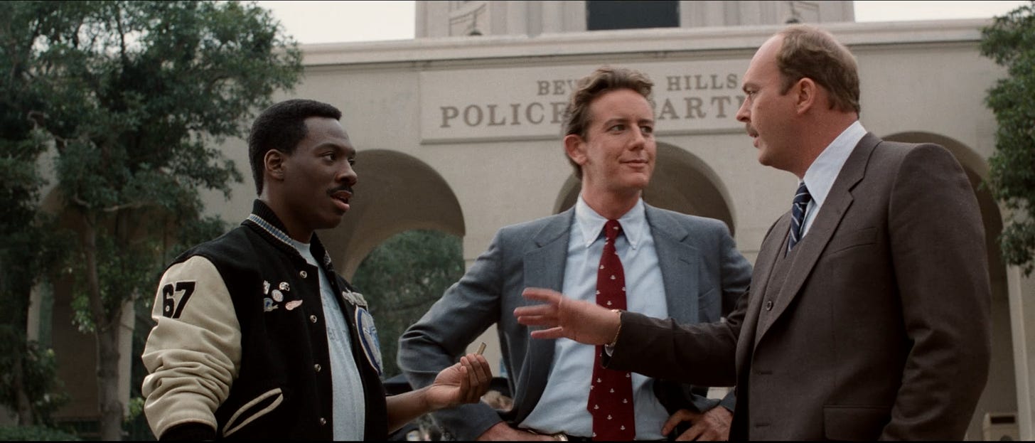 In a lawsuit Ferguson filed in Los Angeles Superior Court against the WGA, he contended that Murphy had offered no story input, Wachs minimal input, and Skaaren’s contributions fell under the thirty-three percent rule the WGA applied to gauge whether a screenwriter’s contributions to the shooting script were enough to warrant credit. For example, for a scene written by Ferguson set in the precinct house where Jeffrey covers for Axel while he’s secretly in Los Angeles, it wouldn’t matter if 100% of Ferguson’s dialogue was rewritten. If the scene still took place at the precinct house with Jeffrey covering for Axel, revisions would unlikely amount to thirty-three percent as far as the writers’ union was concerned. Based on these rules, at least two of the WGA’s three arbitrators sided with Ferguson. Screenwriter Nicholas Meyer had done significant rewrite work on Fatal Attraction (1987) without a writing credit, while Leslie Dixon’s rewrite of the comedy Blind Date (1987) had warranted her a screenplay credit. Meyer took issue with Murphy & Wachs’ grab for credit and concluded that Skaaren’s polishes to Beverly Hills Cop II amounted to 5% of the shooting script.