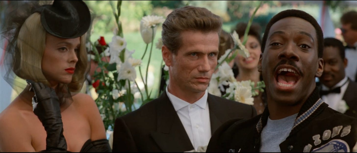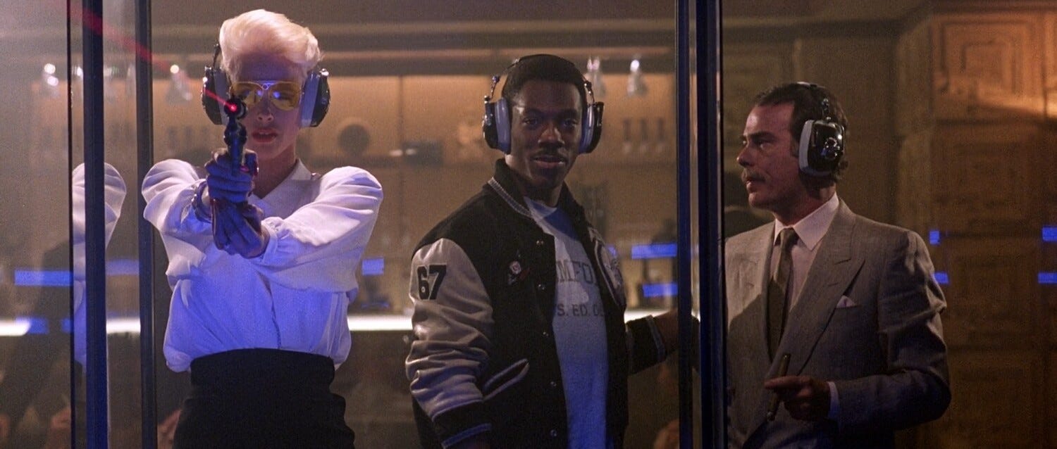 As a standalone, Beverly Hills Cop II would be terrible, but as a sequel, with recurring characters getting together one more time, it does have its charms. In an era where actors could vanish from the public for a year or more between films, seeing Murphy, Reinhold, Ashton, and Cox together again is satisfying. The moments their characters talk about going marlin fishing, we can see the actors wish they were off this picture and doing just that. While Beverly Hills Cop had the gritty undertone of a seventies cop movie, Beverly Hills Cop II leaves no doubt which decade it was produced. The credit card receipt is practically posted to the screen. Cop II is shot, edited, and scored (once more by Harold Faltermeyer, who composed a propulsive electronic score this script is unworthy of) to terrific excess. Great import is placed on designer clothing, jewelry, foreign cars, firearms, and sunglasses. Tony Scott makes everyone and everything look cool. As an exercise in style, Beverly Hills Cop II is watchable, something apparent by the malodorous Beverly Hills Cop III (1994) which was not produced by Simpson/ Bruckheimer.