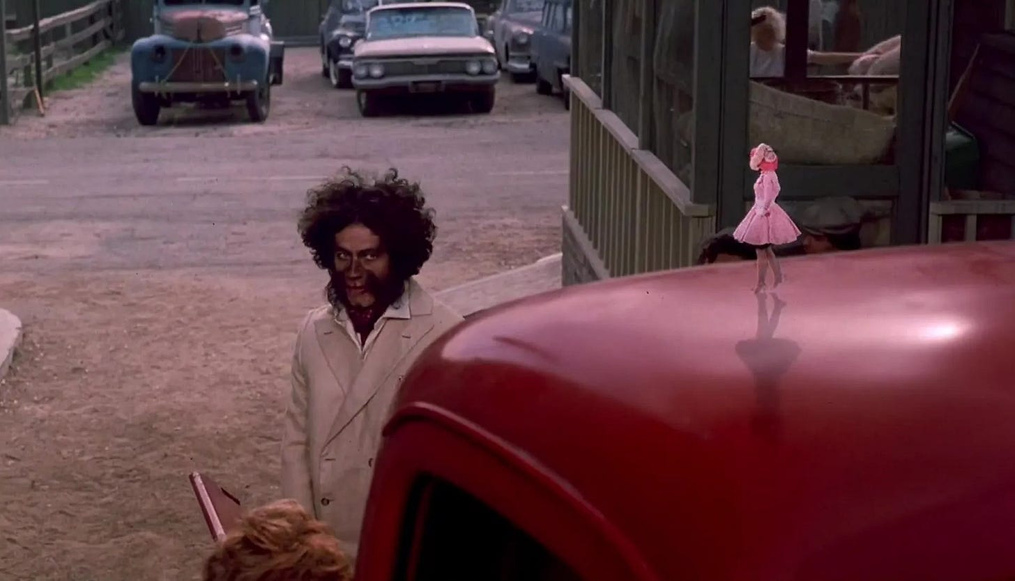 For the script by Paul Reubens & George McGrath to begin to work, the circus needed Pee-wee to help them recapture the magic in their lives, perhaps after he shares a big announcement with Dottie (Elizabeth Daily from Pee-wee’s Big Adventure, whose absence is felt hard) that instead of an engagement ring, he’s using his Hollywood money to purchase the Cabrini Circus and go on the road with his investment. Whether the show is on its last legs because of dwindling box office and this has made its cast members despondent, or the diminishment of their world has soured their lives and led to declining ticket sales, it would’ve given Pee-wee something to fix and something for its broader cast to work with. In addition to casting Benecio Del Toro as “Duke the Dog-Faced Boy” early in his career, Susan Tyrrell is a nice addition as a three-inch tall lady. Both characters should face difficulties–falling in love with a feline-faced girl, perhaps, or being visible to her husband–but the screenwriters lack the discipline to develop their characters. The script is missing an adversary, two cranky old ladies and a needlessly antagonistic sheriff (the usually stoic Kenneth Tobey) shoehorned in to imperil the circus. The arrested development Big Top Pee-wee proceeds with might have been a symptom of Reubens & McGrath writing for children’s television, or more likely, exhaustively writing without a break. The entire effort feels tired. Randal Kleiser’s career suggests the vision of his producers–rather than any point-of-view he has to offer as a director–to be paramount, and other than making sure the camera is in focus, puts in pedestrian work, a glaring deficiency following in the footsteps of Tim Burton.