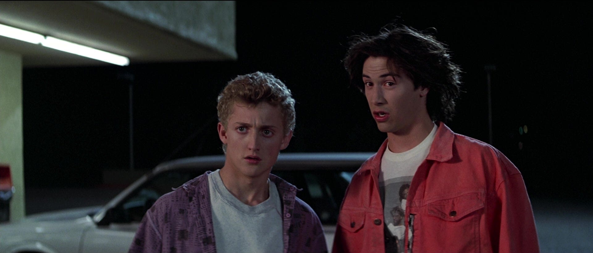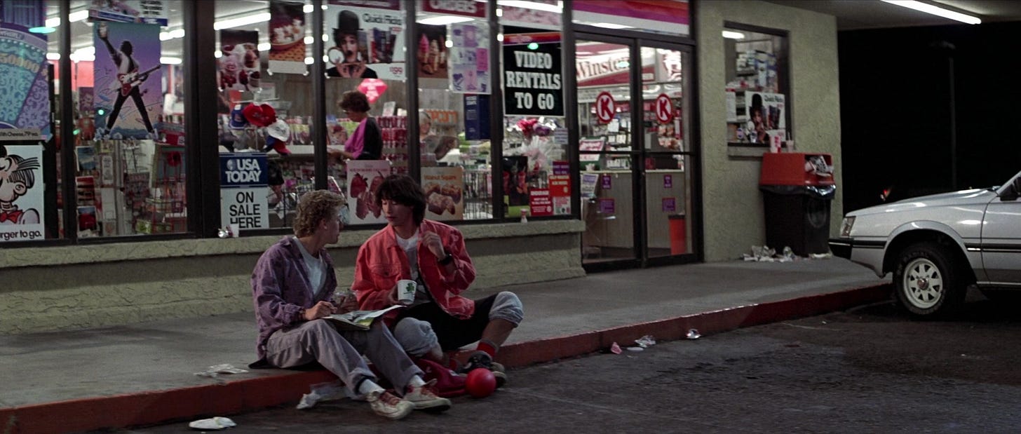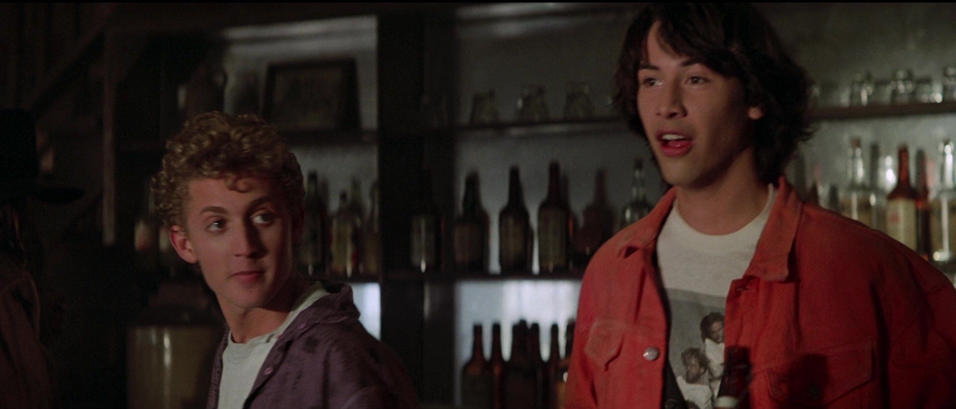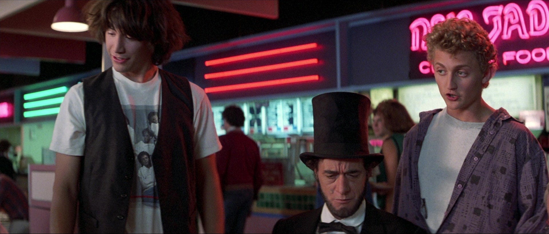 BILL & TED’S EXCELLENT ADVENTURE (1989) is a comedy in which suburban teenagers are promoted to the unlikely role of diplomat when they travel through time, and though it’s not the same movie as Back to the Future (1985), it’s a better movie in many ways. One has funnier jokes, better performances, less repetition, depicts the bygone as something other than a television sitcom, teaches us about history, and is wrapped in a positive message. The film that does that isn’t the one that topped the box office for months, but nearly went straight to cable TV.