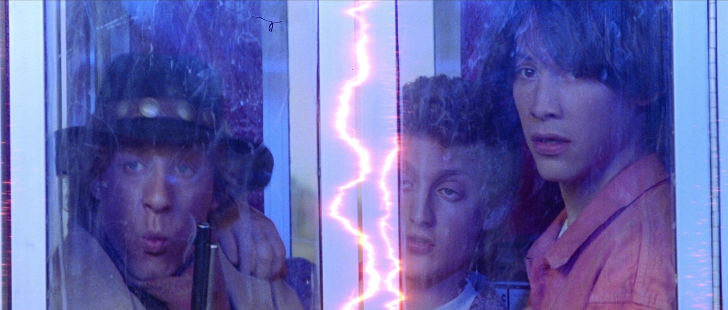 Stephen Herek’s suggestions for the script improved it. “[Originally] it was a van but visually all I could come up with was an image of Scooby Doo. I tried to put a certain believability to it. The idea that there’s these phone lines–the circuits of time–and you can dial a number, connect to a circuit, go through these wires and then boom! You’re spit out into this phone number in time. It felt like it could be a lot of fun but also had a certain logic to it.” [Matheson & Solomon and Herek would all plead ignorance of Doctor Who, the forever-running BBC science fiction series that sent its title character through space and time in an English phone booth. In the U.S., the program was considered more educational than commercial, reruns relegated to public television on weekends at practically midnight]. Herek thought so much of the material and its potential he campaigned Warner Bros. for the budget to make a quality version. This was a fatal misunderstanding of why the studio had hired him: everyone was expected to work cheap. Roughly one year after Back to the Future had opened to blockbuster business over the 1985 Fourth of July weekend, Warner Bros. made the decision to put Bill & Ted’s Excellent Adventure into turnaround.