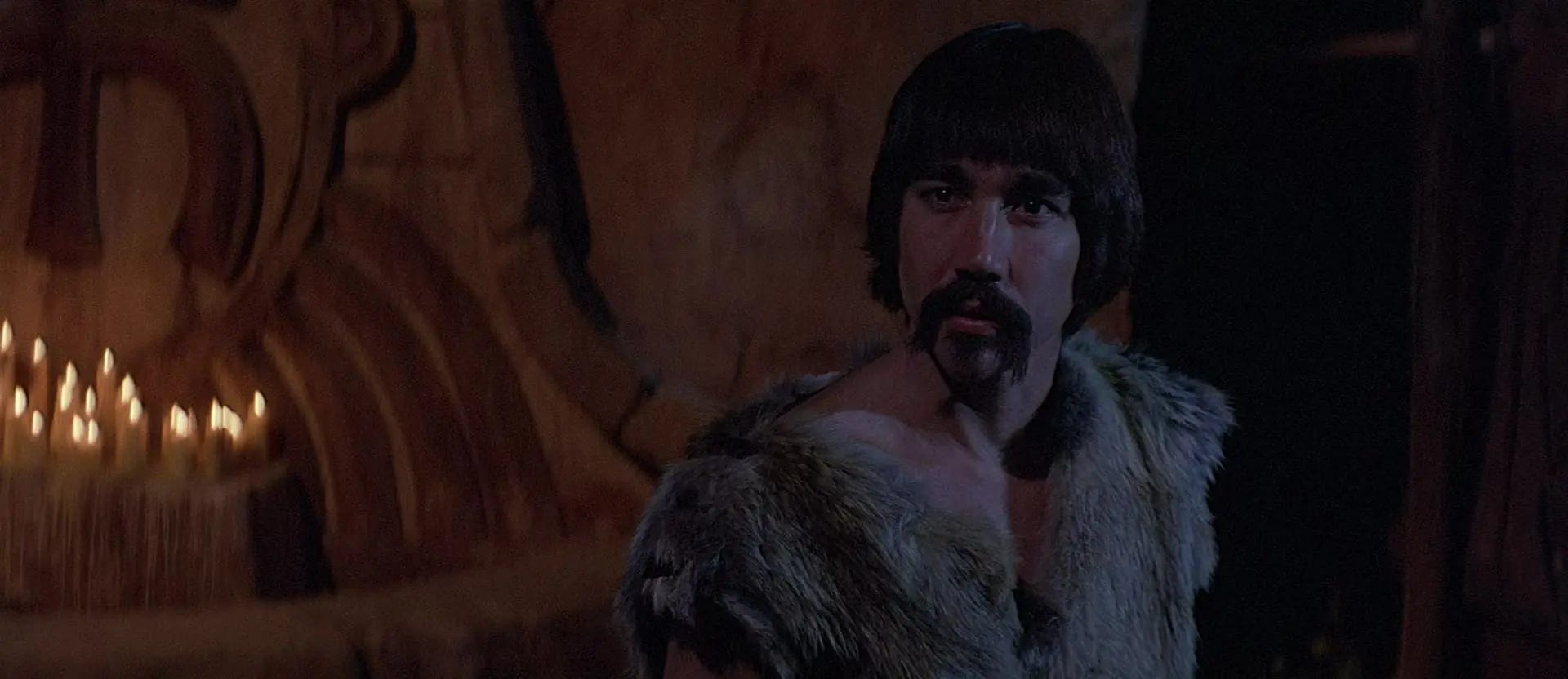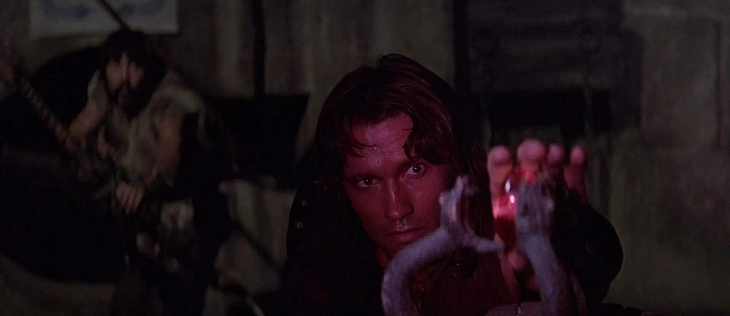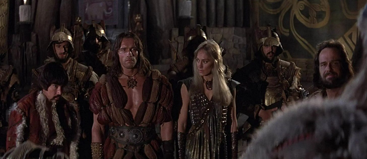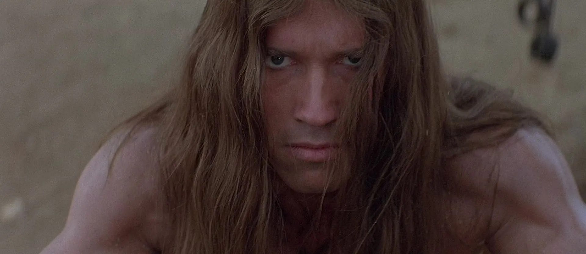 CONAN THE BARBARIAN (1982) was the opening act in a summer movie festival that in 1982 included a dozen future classics: Mad Max 2 (released as The Road Warrior on May 21 in the U.S. and Canada), Rocky III, Poltergeist, Star Trek II, E.T., Blade Runner, The Thing, The Secret of N.I.M.H., Tron, Fast Times at Ridgemont High, and An Officer and a Gentleman. Where Conan falls on that list might depend on the viewer’s awareness of the Marvel Comics line or the pulp fiction by Robert E. Howard it was adapted from, but as a fusion of sight and sound, it enthralls for much of its running time, building a world from the ground up and announcing the arrival of a major film star, perhaps the biggest in terms of musculature ever.