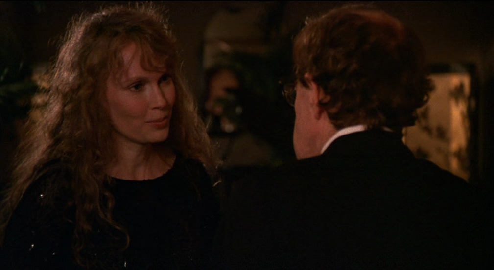 As was often the case when watching an assembly of his films, Allen not only saw what he could do better, but had the money to do so baked into his budget. He decided to rewrite and reshoot the majority of Cliff’s storyline. Instead of Farrow’s character being a social worker, she was rewritten as a producer for public television, divorced instead of married. Cliff falls for her while making a documentary on his brother-in-law, Lester, a fabulously successful producer of television comedies who represents everything Cliff despises. Alan Alda’s part was expanded considerably, Lester offering Cliff a job strictly as a favor to his sister. Cliff takes the money in order to finish his passion project, a documentary on an aging philosophy professor (German actor Martin Bergmann). Reshooting the wedding reception that concludes the film (at the Waldorf Astoria Hotel in Manhattan), Sean Young was not asked to return, her role written out of the picture. Allen made a minor alteration in Judah’s story, reshooting a scene between Landau and Huston that had taken place in her character’s apartment. Allen opted to reshoot it as written in a parked car at a gas station.