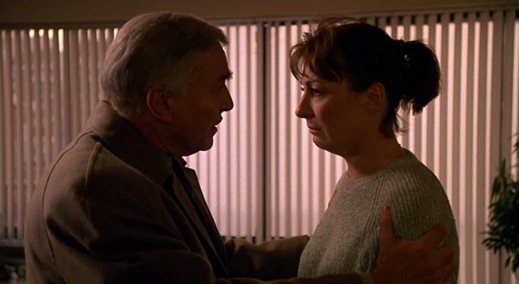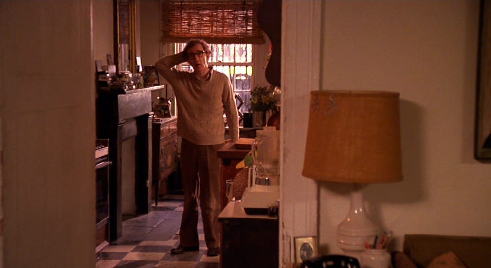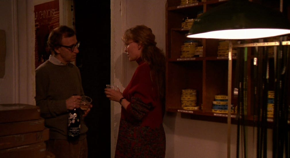 Huston is terrific, as is Martin Landau. The moment Judah appears on the verge of confessing murder to his family is stunning in terms of performance. What makes Judah Rosenthal such a rich character is how deep he’s fallen into a well. The crimes he’s committed–Did he make promises to his mistress? Did he embezzle funds?--are as unclear to him as what action he should take to atone. Cliff is guilty of smaller crimes, but is just as confused. Allen’s ardor for Mia Farrow’s character comes across as very real, and her rejection of him is something Allen makes the viewer feel. The script does have signs it was written with speed, with much of the story moving forward by dialogue instead of action, like a play, and some of that dialogue perfunctory. (Caroline Aaron, playing Cliff’s sister, shares a dating story from hell that Allen reacts to as if they’d been rehearsing for too long). Allen does handle transitions between storylines well, using movie clips–from Mr. and Mrs. Smith (1941), This Gun For Hire (1942) and The Last Gangster (1937)–that Cliff is watching and that comment on what Judah was grappling with in the previous scene. Alan Alda is a tremendous relief hitter, and the decision to give his character–better looking than Cliff, richer than Cliff and also smarter than Cliff–more screen time unearths a whole other movie, one about a man cursed by a family member who has everything he wishes he did. The cumulative effect is a tragic comedy that packs in existential questions and laughter, made by a filmmaker who’d been honing this very sort of film for years.