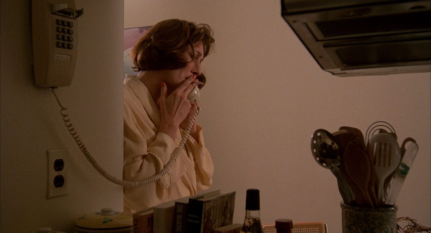 Crimes and Misdemeanors stands among Annie Hall (1977), Manhattan (1979), Hannah and Her Sisters and Another Woman as the five best pictures written and directed by Woody Allen in his first twenty years as a filmmaker. Though Allen had experimented with suspense in Another Woman, this is an enthralling departure, his first film in which a murder was plotted and a corpse discovered (Victor Argo plays the police detective who has a few questions for Judah). But as if Allen were in the favor-granting mood to his financiers, it also marked a return to form for Woody Allen the comic actor (“I can’t watch his stuff,” Cliff rants to his wife about her beloved brother’s television work, “It’s sub-mental!”) as well as a step forward for him as an actor, period. Instead of feeling disjointed–as if half the script were scribbled on stationery, which it was–the two halves of Crimes and Misdemeanors balance each other, contrasting everyday sins with those that carry prison sentences. Among the questions asked by Crimes and Misdemeanors are what the nature of sin is, whether confession is good for the soul, or whether sparing your loved ones pain counts for something with God, if there is a God. Credit goes to Anjelica Huston, the daughter of a film director who grew up meeting brilliant people and modeling. Here, Huston is stripped of her nobility, playing a flight attendant who doesn’t possess a drop of culture, but unlike Judah’s wife, is willing to make him the center of her life. She deludes herself that her loyalty will be rewarded, and realizing it won’t, is split open like a raw nerve.