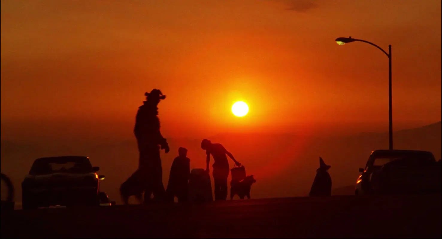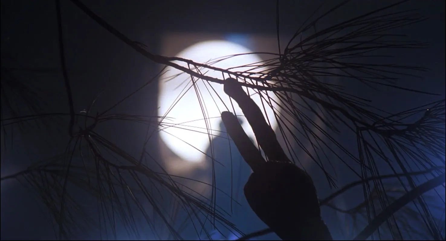 Until the moment the government comes for E.T., almost all the adults are shot from the waist down, over the shoulder, or at a distance, like the Warner Bros. or MGM cartoon shorts of the ‘50s, a bold choice for a live-action film. In a child’s world, grown-ups only appear in close-up if they’ve passed certain tests, like Mary, who’s hanging on by a pretty loose thread, and once he introduces himself, Keys (Peter Coyote), who hasn’t lost his childlike innocence either. In this way, E.T. remains subtly anchored in a child’s point of view. Comic moments rooted in reality by Spielberg and his director of photography Allen Daviau, as well as wonderful pantomime by Caprice Rothe performing E.T’s arms and hands, are shed as the film shifts into another gear, an emotional one in which a child adopts an animal, protects it, nurses it back to health with love, but then has to release it. Those who made it through Disney’s Old Yeller (1957) without tearing up will be vulnerable to the beauty of Melissa Mathison’s chart and Steven Spielberg’s orchestration. The last twenty minutes of E.T. are up there with the best of anything ever put on film–magic, excitement, joy–with a musical score that ranks as the most powerful John Williams composed. As the undefeated champion of the “Kids on Bikes” movie, it launched the entire series run of Stranger Things on Netflix, Millie Bobby Brown more or less playing an E.T. who bike-riding children in 1980s suburbia adopt. The original has no peers.