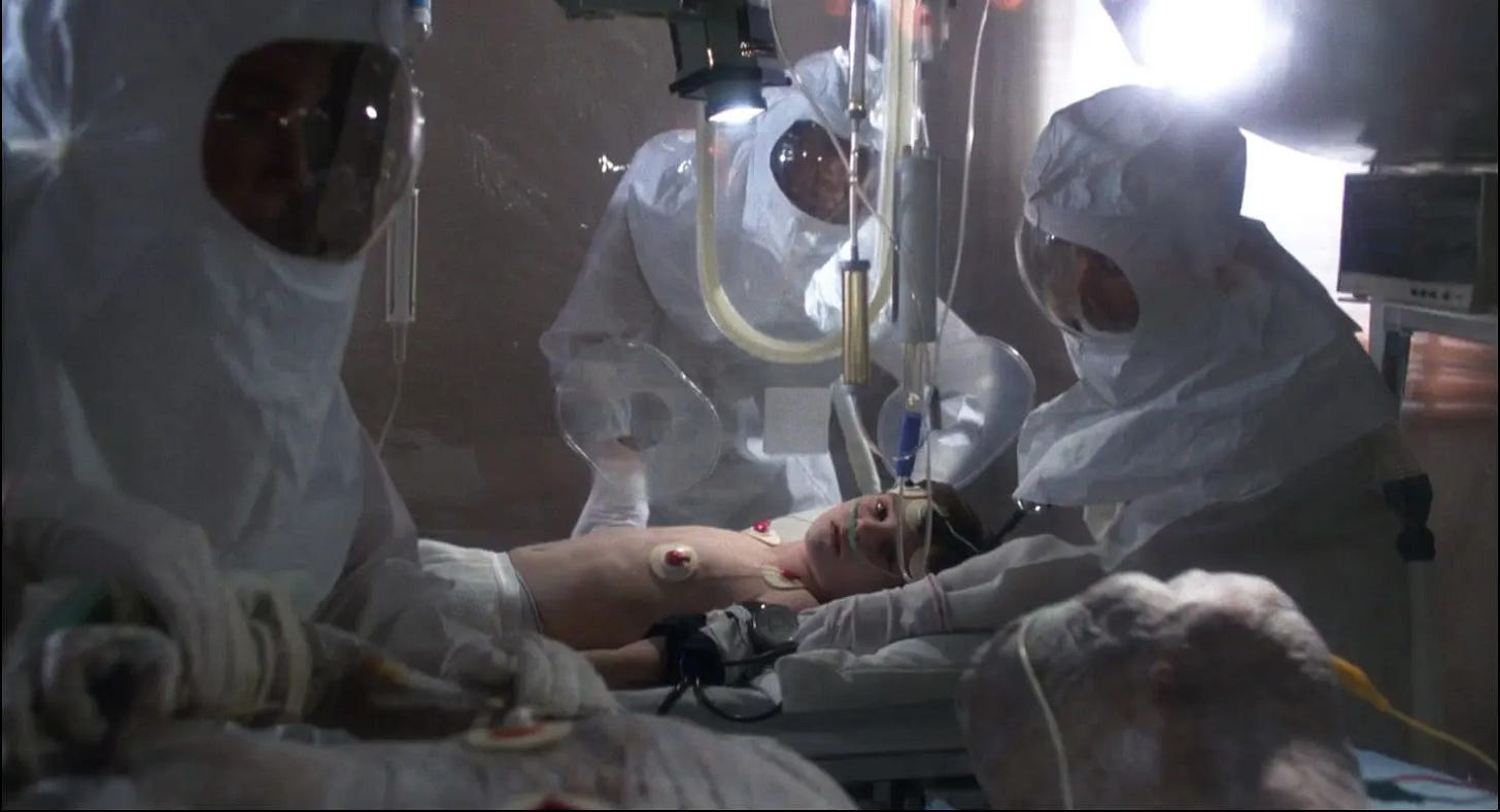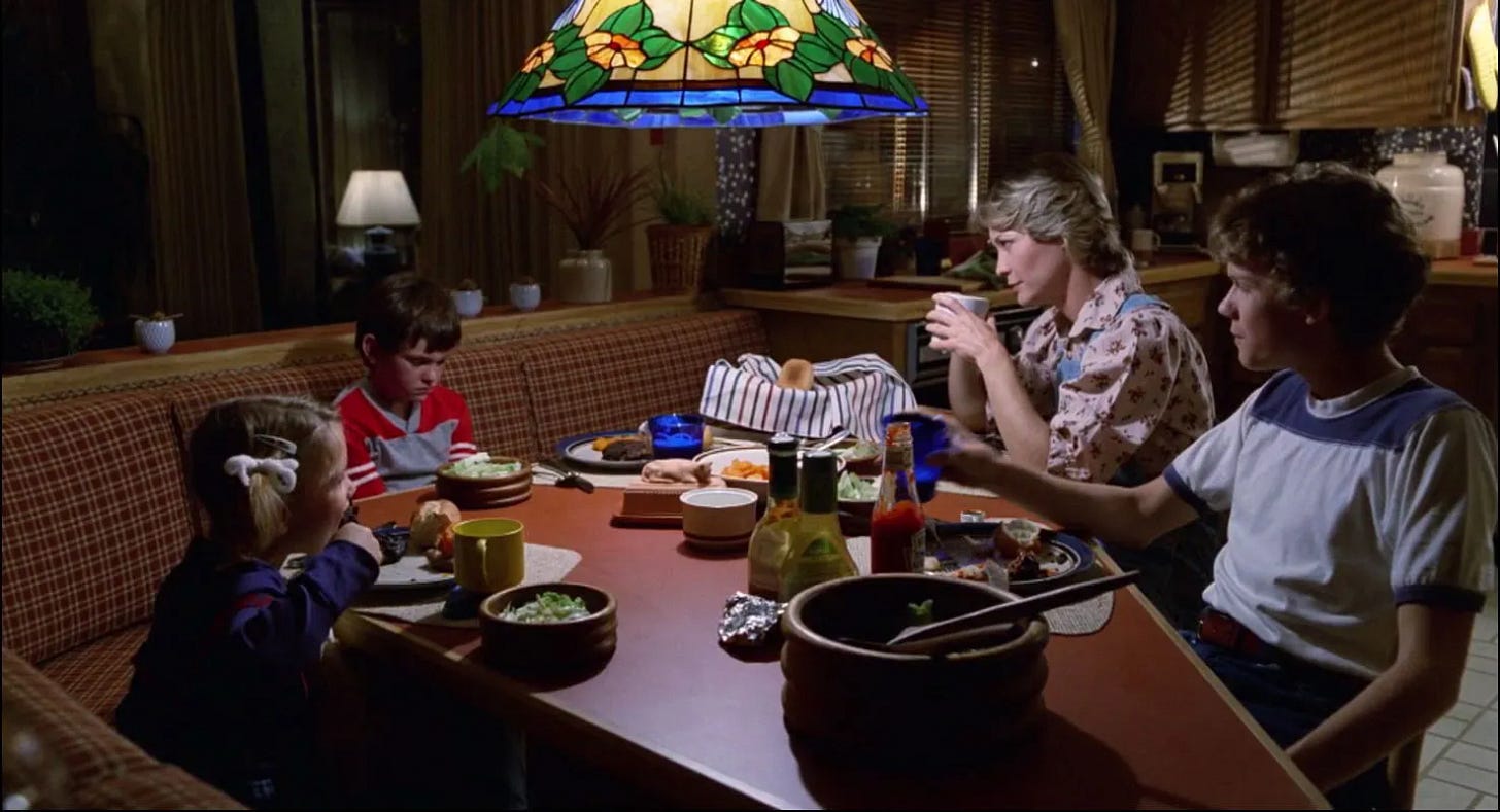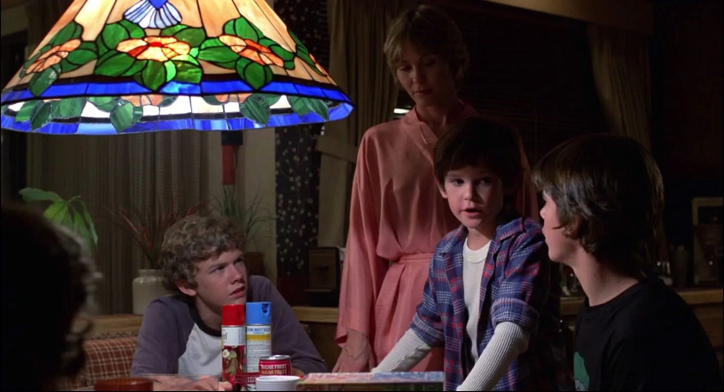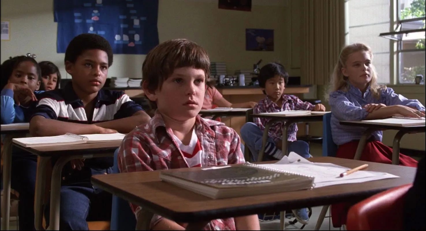 One of the delights of E.T. the Extra-Terrestrial is that it validates for those of us who believe we’re not alone in the universe that intelligent life is not only out there, but that it could visit us and remain anonymous because most adults would be too busy to notice. In its funniest scene, Mary is so preoccupied–unloading groceries, tending to Gertie, taking a call from Ellott’s school–that she doesn’t see an alien waddling through her kitchen (Drew Barrymore’s line when Dee Wallace hits E.T. with the refrigerator door, “Here he is. The man from the moon, but I think you've killed him already,” is hysterical). For all the criticism Steven Spielberg accepted for his comedy 1941 being unfunny, there are laugh out loud moments throughout all of his action/ adventure films, and operating with material that he could relate to from the inside out, E.T. tickles the funny bone more effortlessly than any film he’d made before or since. Its young cast–including future Playboy Playmate Erika Eleniak, who memorably popped out of a cake in Under Siege (1992)--are directed in a way that they understand who their characters are, Mathison and Spielberg knowing what each child’s relationship would be and what they’d be doing from scene to scene as a real child, not a movie character acting out a plot. Specifically, E.T. is made possible by the children of one particular generation, Generation X, who grew up unmonitored. Today’s children exist under such a microscope that Elliott’s encounters with E.T. would be recorded by security cameras, the movie proceeding very differently, if at all.