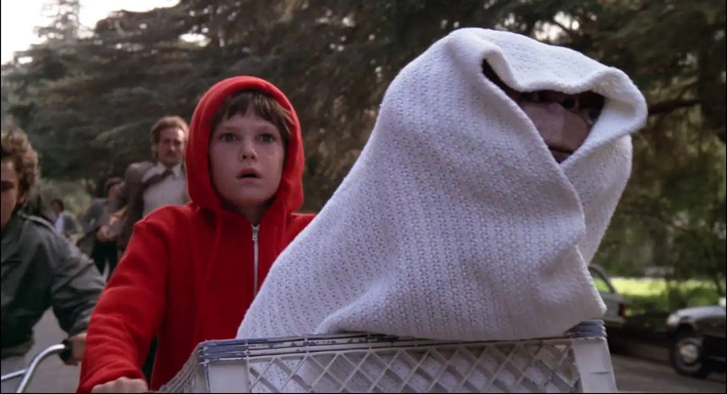 E.T. THE EXTRA-TERRESTRIAL (1982) doesn’t need reframing to appeal to a wider audience–until Jurassic Park (1993), it held the title of highest grossing movie ever made--but for those who don’t like science fiction pictures or creature features, this is a story about a child and a lost dog. The child thinks they’re rescuing the dog, but it’s the dog who ends up rescuing the child, and its work done, it goes home. If that summary doesn’t pull any emotional chords, the movie is on another level, written, shot, edited and scored to magnificence.