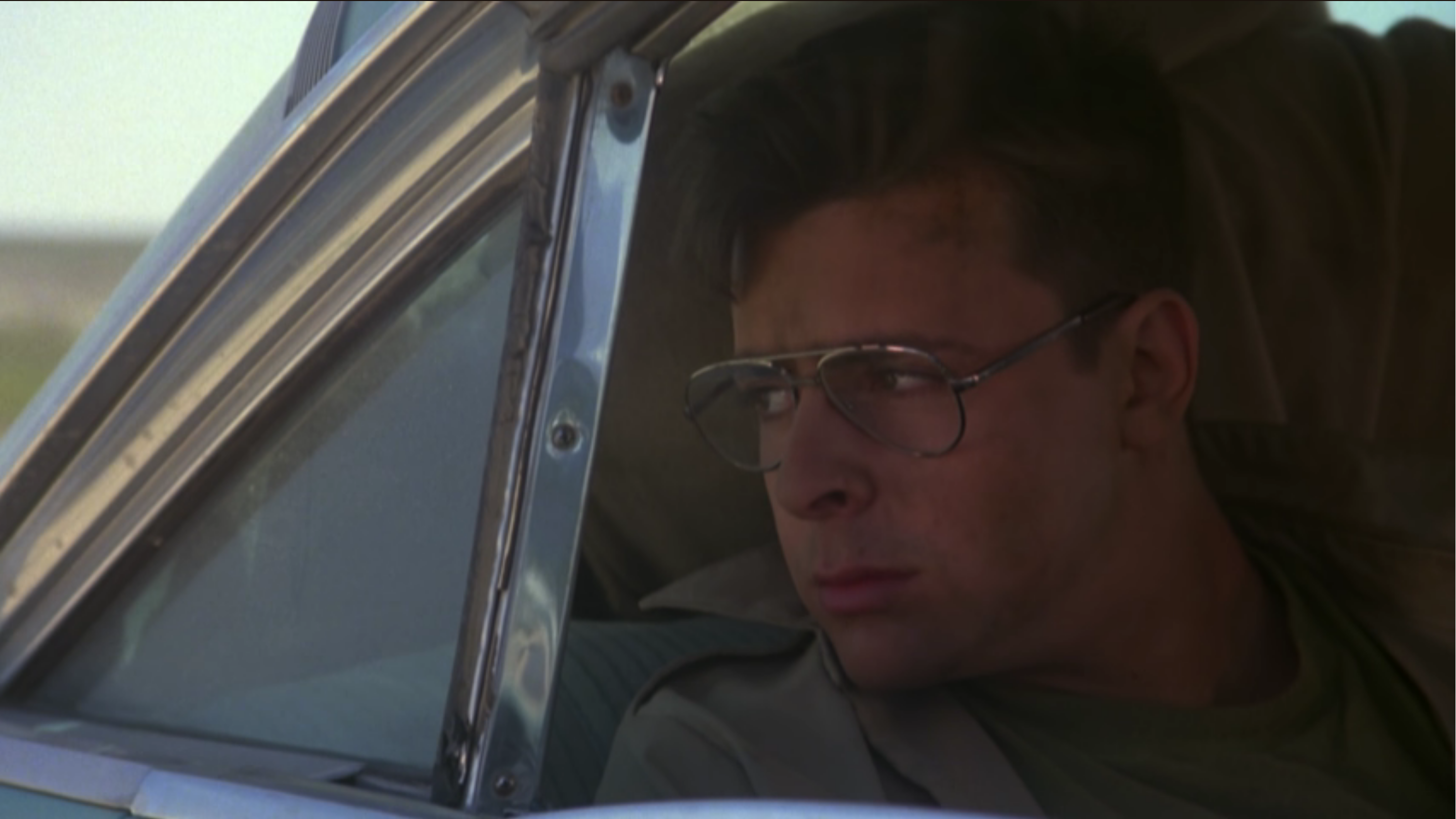 Sam Robards, son of actors Jason Robards and Lauren Bacall, was cast as Kenneth Waggener, whose decision to cancel his wedding due to conscription into the armed services sends the Groovers on their road trip. Judd Nelson, who’d starred in a comedy titled Making the Grade (1984) that was a year from being released, was cast against type as Philip Hicks, the “weenie” who has to prove his manhood by diving out of a plane. Kevin Reynolds centered his search for the other two members of the Groovers in Austin. Brian Cesak was a finance major at UT who answered an ad in the Daily Texan that asked readers, “Do You Want To Be a Star?”. The actor needed to fit into small spaces and be carried from place to place, spending nearly the entire film comatose. With little more than a month to go before graduation, Cesak dropped out of college to make Fandango. Chuck Bush was discovered at a local 7-Eleven. At 6’7” and 365 pounds, Bush was working as a security guard at Dillard’s department store, but had aspirations to study osteopathic medicine. He’d stopped off at the convenience store at midnight for a soda and was walking out when Reynolds and his assistant Mark Illsley, who were days away from principal photography and had been out scouting bars on Sixth Street for fresh faces, were walking in. Bush recalled Illsey running out to ask him if he wanted to be in movies. Like Cesak, he dropped everything to go to West Texas for nine weeks to film his role in Fandango. Credited as “The Girl,” Suzy Amis was a model from Oklahoma City making her film debut. Amis’ movie career would climb steadily and in 1997, she appeared as Rose’s granddaughter in the contemporary sections of Titanic.