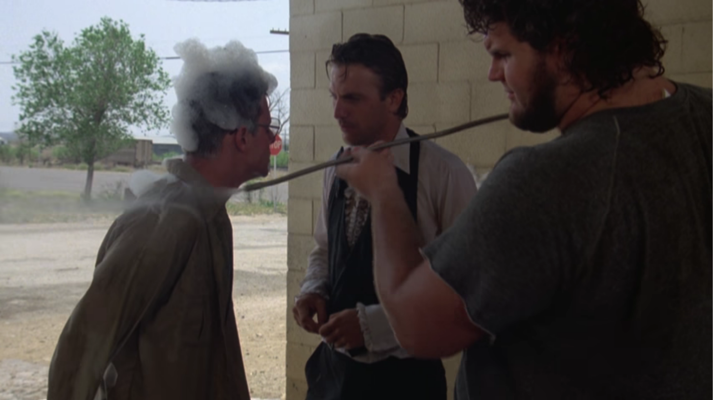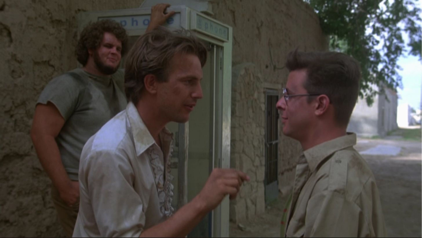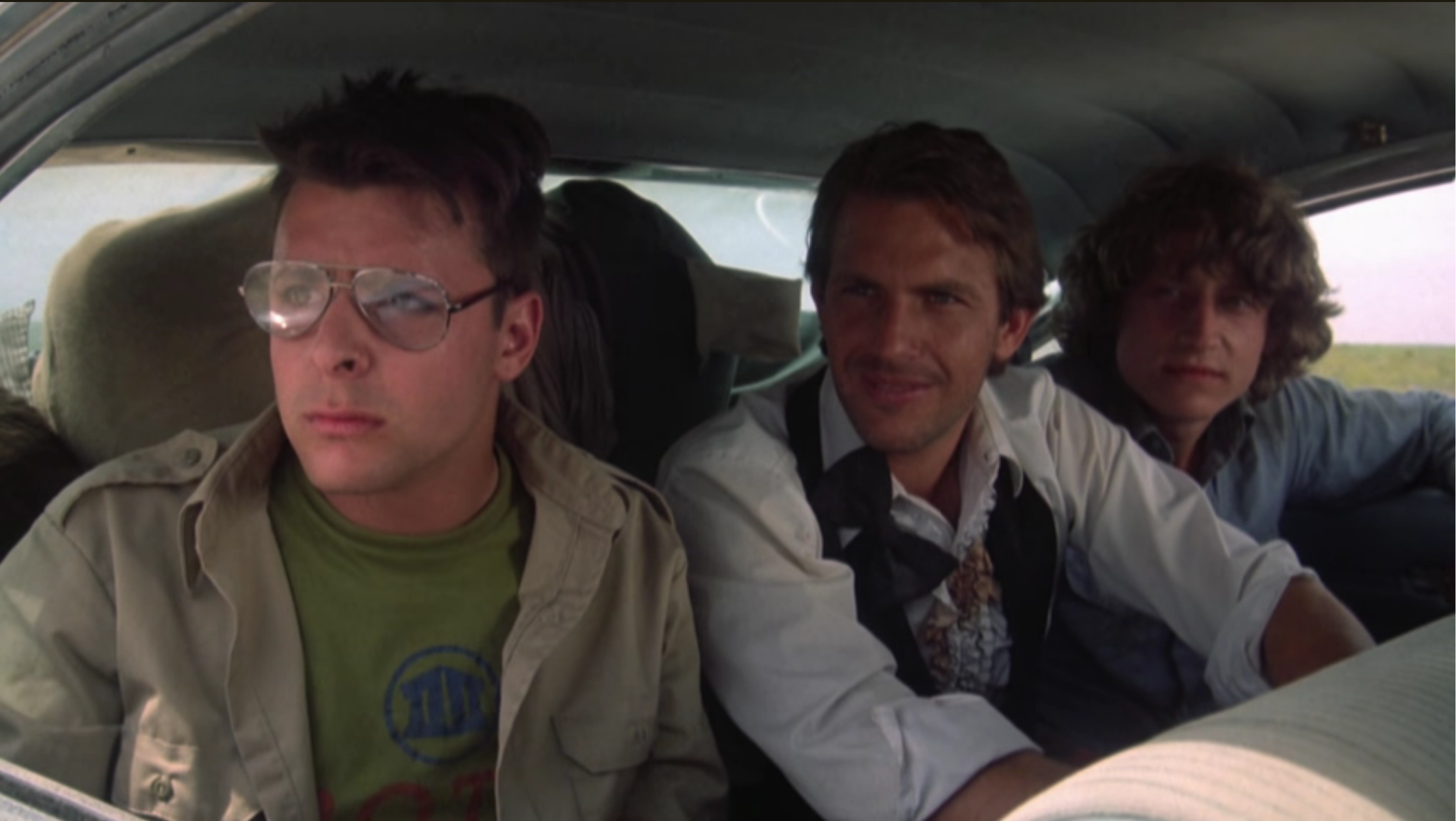 If someone pitched “Animal House meets Days of Heaven” and had it taken seriously in Hollywood, the result would be Fandango. For that, filmgoers can be at least a little grateful. At its best, it anticipated the spirit of Dazed and Confused (1993), at a fraction of the scale. Both films are about young men in Austin, Texas who have a full tank of gas, some groovy tunes and a lot of beer. We meet them on the last day of school in the 1970s, and with more energy than direction, they go forth in search of something to happen. While Dazed and Confused unwinds over twenty-four hours in a completely natural way, Fandango is a shotgun marriage of outrageous action and poetic melancholy. With sharper detail and a stronger voice, Kevin Reynolds might have pulled that union off. West Texas looked exactly the same in 1983 as it did in 1971, right down to the haircuts, and Reynolds doesn’t offer a compelling reason for his story to take place in the Vietnam War era. He doesn’t really know who his main characters are, which is apparent by how much Kevin Costner is allowed to cackle or yahoo his way through his first lead role for a lack of anything to say. Reynolds casually reveals that the Girl who Gardner Barnes let get away and is apparently still hung up on is now engaged to marry Waggener, yet that dynamic–which leaves room to explore what a derelict Gardner is–goes unexplored. It’s as if Reynolds didn’t want to cast aspersions on his fraternity brothers.