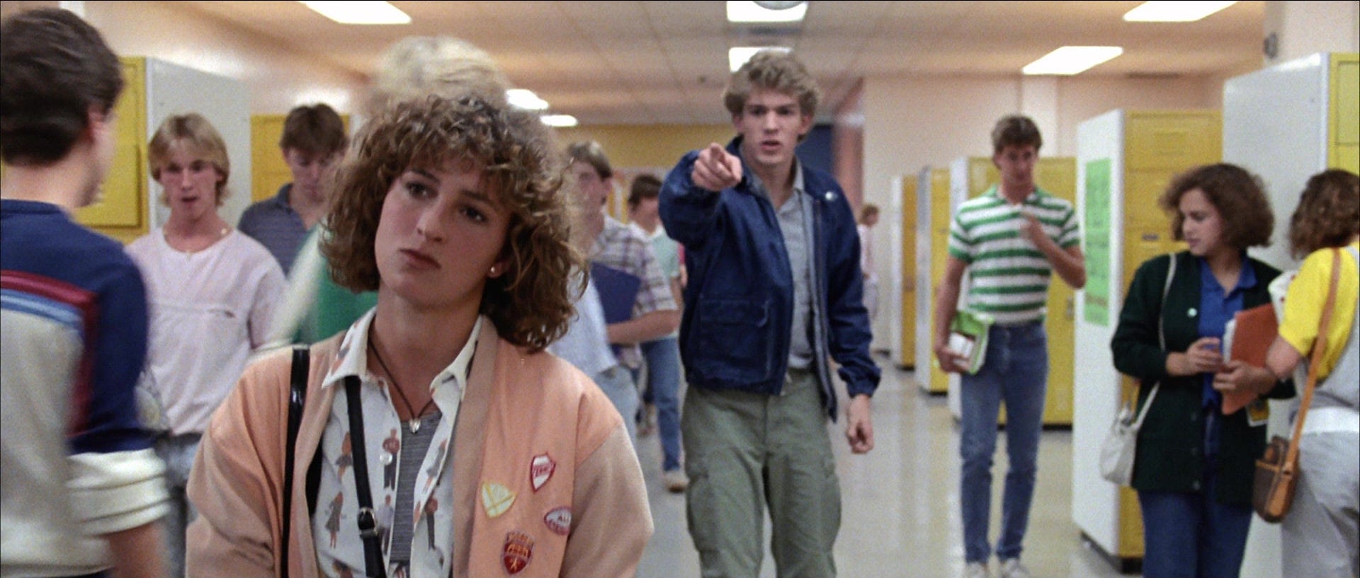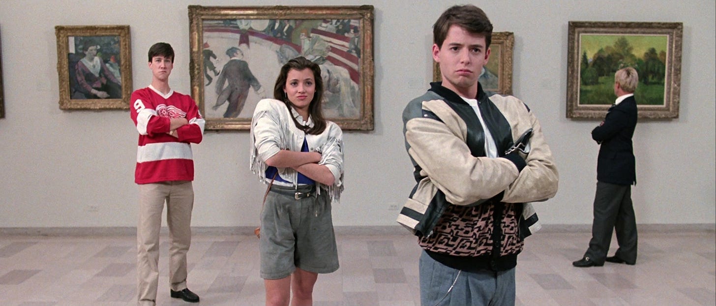 Ironically, the film’s three best scenes don't feature its three top-billed actors. Ben Stein, cast as a monotone civics teacher whose lesson on the Hawley-Smoot Tariff Act draws stares from his students that range from emptiness to pure hatred, gets the biggest laugh. Another goes to Jeffrey Jones (as Edward R. Rooney, Dean of Students) hitching a ride on a school bus in an end credits sequence. The best scene features Jennifer Grey (as Ferris’ grudge-holding sister) and Charlie Sheen in a police station. Written and cast as if Hughes had a crystal ball, the roles of a pampered daughter and party monster fit Grey and Sheen like tailored suits. It’s easy to miss Sheen, of all people, issuing the strongest moral in the movie. A valid criticism is that Hughes missed making a better film by focusing on Jeanie and Garth (Hughes did write an unproduced script titled Oil and Vinegar that sounds like a Jeanie and Garth road movie). Inspired by Michael Caine in Alfie (1966), Hughes wrote Ferris talking directly to the viewer. Critics who observed that Ferris has little of interest to say might have missed that, just as the movie isn’t really about high school, Ferris isn’t telling us much we don’t already know. What he’s doing is being democratic, inviting everyone to hang out with him regardless of our social standing. Those who take hold of the movie on those terms are rewarded with a terrific diversion.