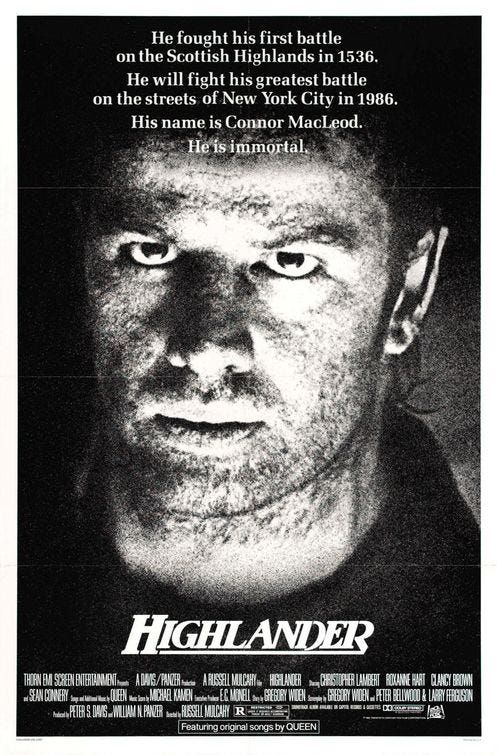 Thanks to Jonathan Melville, author of A Kind of Magic: Making the Original Highlander, his 2020 book documenting much of the film’s production history that might’ve otherwise been lost to time.