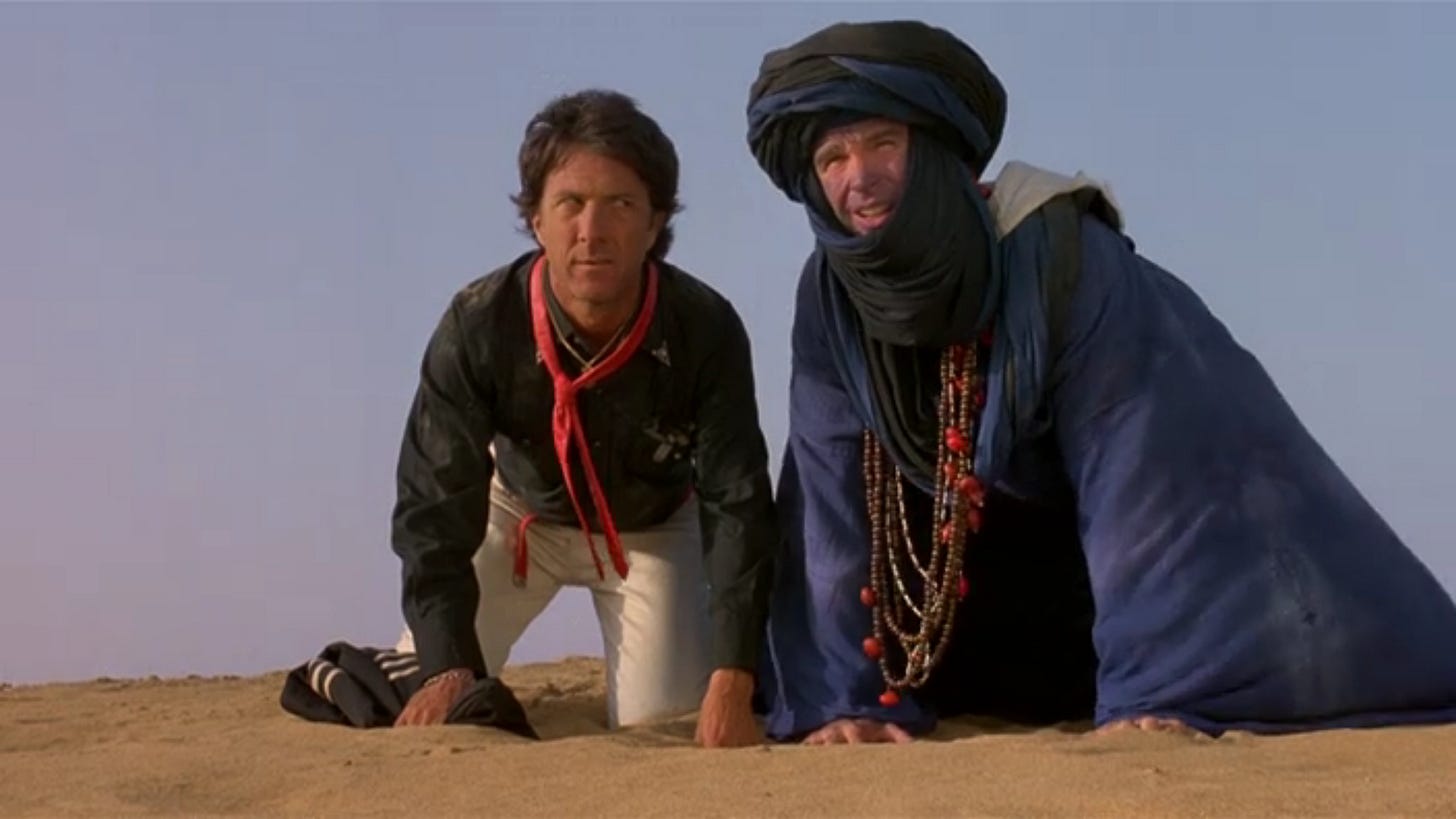 Once the action shifts to Morocco, Ishtar has nowhere left to go. It enters a death spin that neither the charisma of its stars or instincts of its writer and director can rescue the picture from. A better version of this material would’ve focused on the once dull lives of Rogers & Clarke and their struggle to overcome by writing a special song they can share with the world. The business in the Middle East—with prophecies and a map and a freedom fighter (Isabelle Adjani, whose role is written and performance directed as if she’s been sentenced to community service) and the CIA and a helicopter and a blind camel—droops. One of the missing anecdotes about the production of Ishtar is why Elaine May was so tickled by the idea of a blind camel to labor over it as much as she does. It’s the sort of bit that a stronger director would have left on the cutting room floor, or never shot, realizing the movie wasn’t about a blind camel. Given that May hadn’t directed a film in twelve years, there were probably two ways Ishtar could’ve gone: as a wondrous balance of slapstick and political satire she’d been writing and honing for a decade, or a grossly out of shape endeavor whose expectations and logistical challenges needed a filmmaker in better rhythm. In addition to the material failing Hoffman, the talents of cinematographer Vittorio Storaro and musical composer Dave Grusin are misappropriated in what could’ve been a small mess set in some sleepy corner of America rather than a giant mess staged in North Africa.