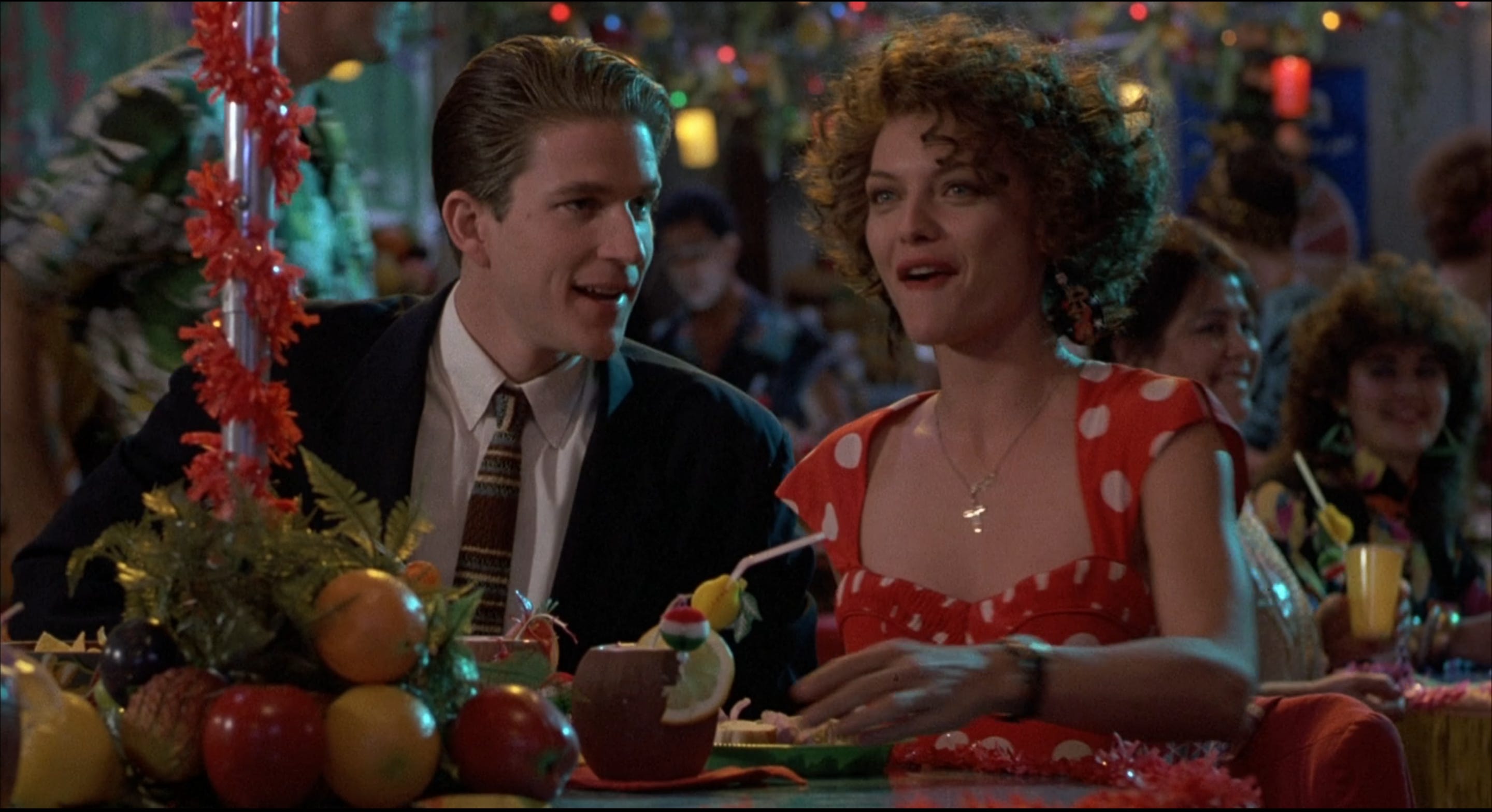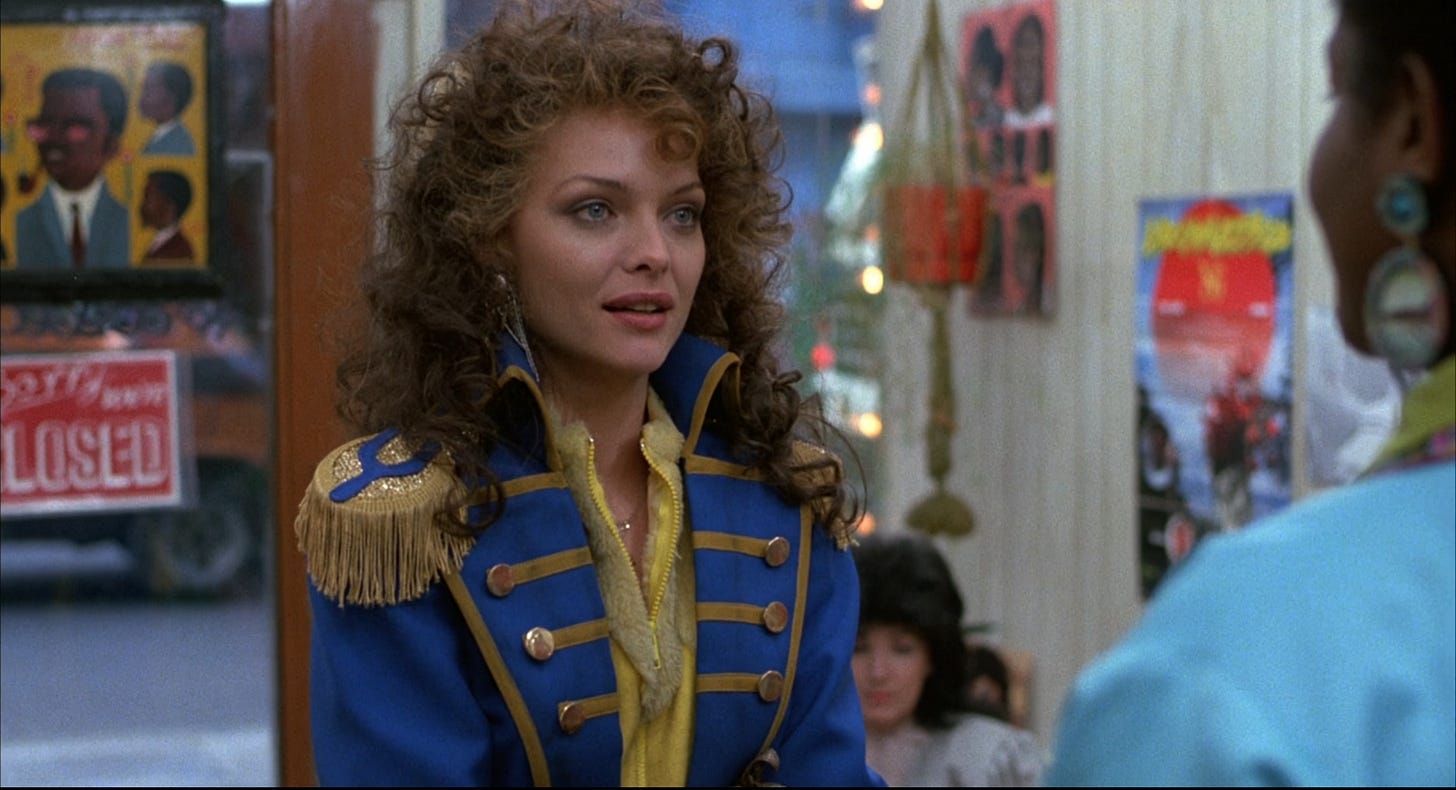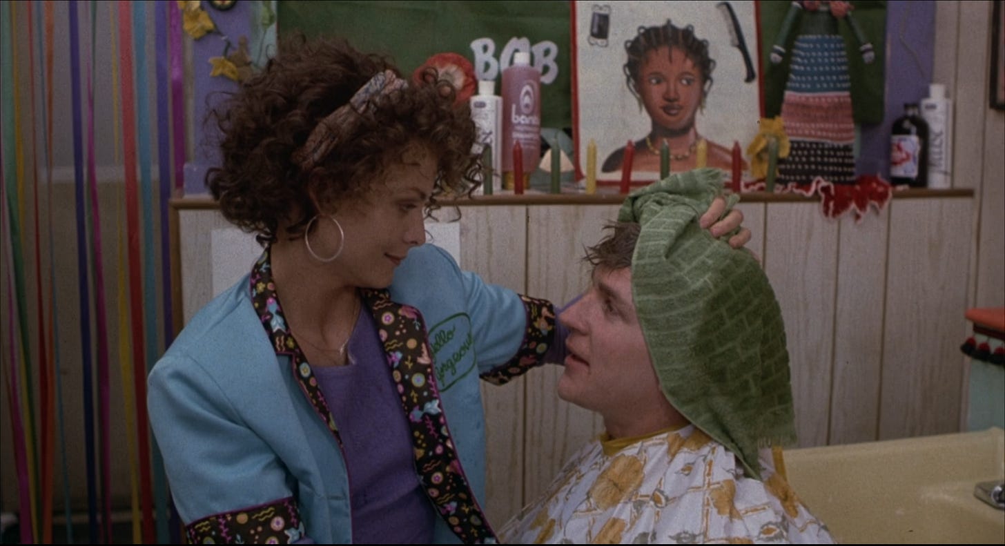 Excusing that the movie doesn’t take crime seriously or feature anyone in the main cast who’s even Italian, Married to the Mob is deathly thin and unfunny. For it to work as a screwball comedy, Pfeiffer’s character needed to be wise to everyone, perpetrating a masquerade to outwit the FBI and mob, who seek to exploit her. Instead, she’s the one exploited, and isn’t any smarter than hack writers would assume a beautician from Long Island would be. Demme keeps his leading lady off-screen for a tedious amount of time, giving scenes to T-men and gangsters written below the level of sophistication of Cracked magazine. The screenwriters may have been too proud to embrace mindlessness and were evidently too unskilled to write smarter. Demme finds his spot with a salon where Pfeiffer’s character takes a job. In addition to a KCRW-friendly soundtrack featuring early recordings by Sinéad O'Connor, Ziggy Marley and Chris Issak, with a musical score by David Byrne, the West Indian salon is cut from a Jonathan Demme picture, depicting America as more diverse than most films at the time. This is where a comedy starring Michelle Pfeiffer should’ve been set, without dopey FBI agents and mobsters this cast is better than. Running 104 minutes, so many scenes were cut that Demme includes outtakes over the end credits, including a gem in which Pfeiffer falls over a railing and trusts Modine to catch her.