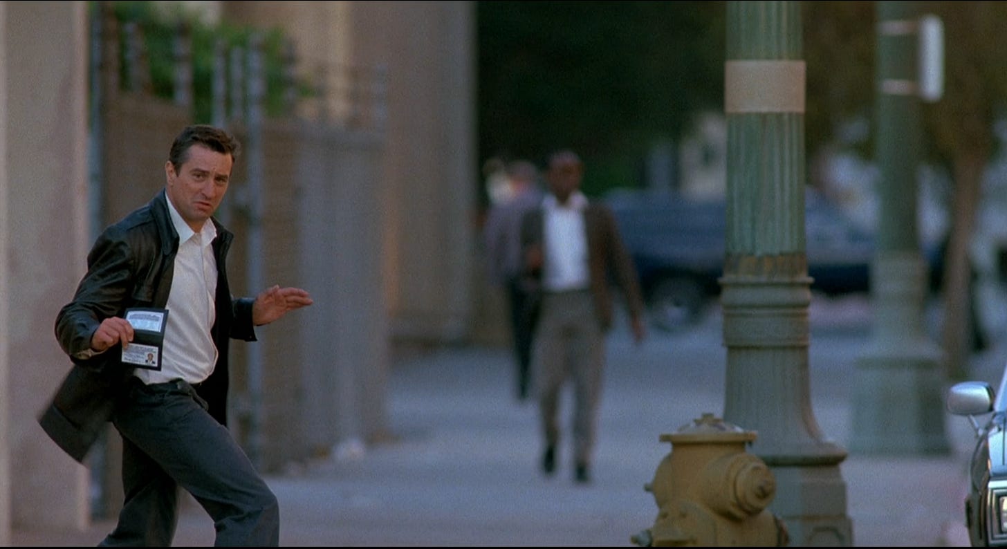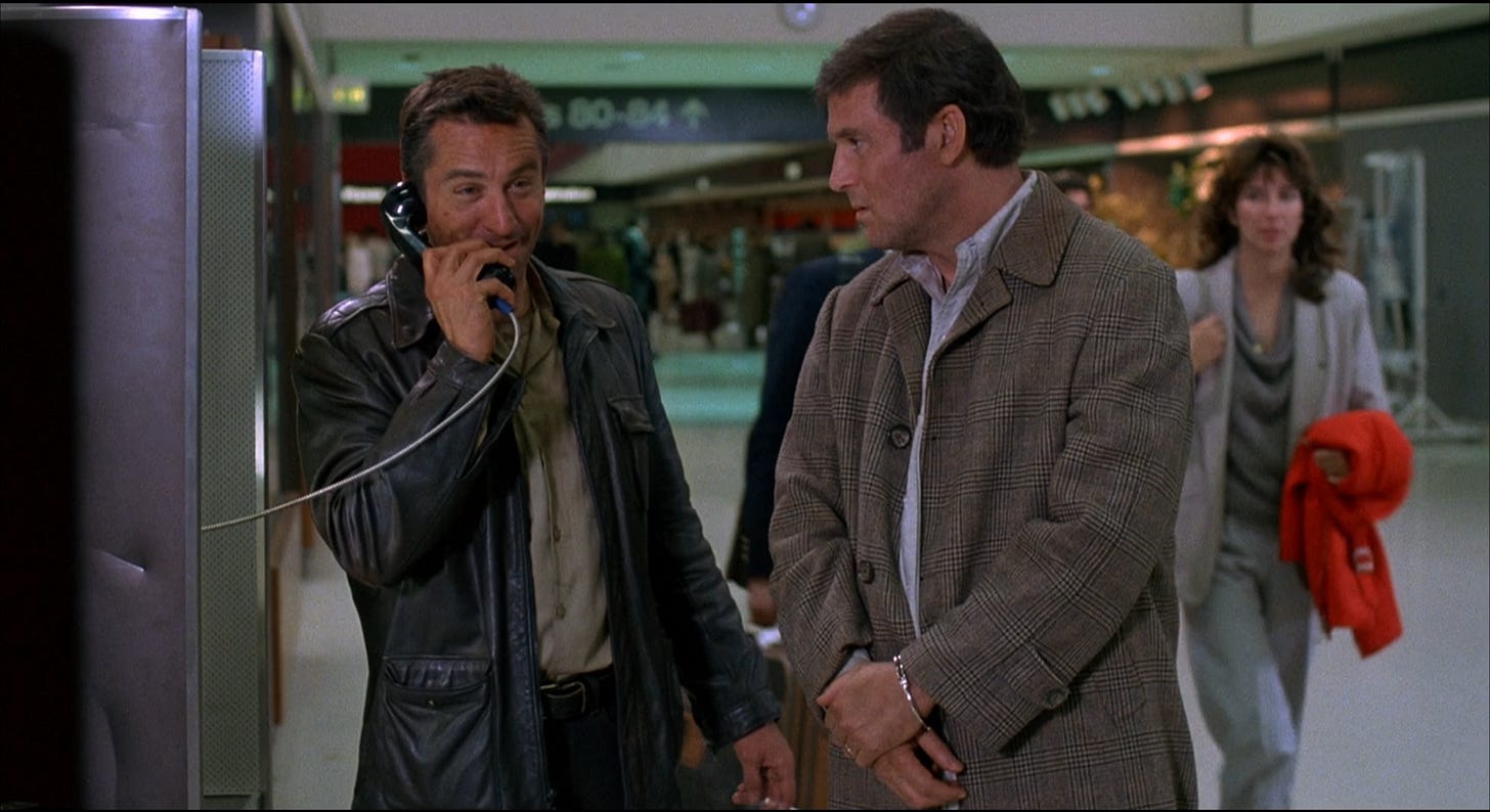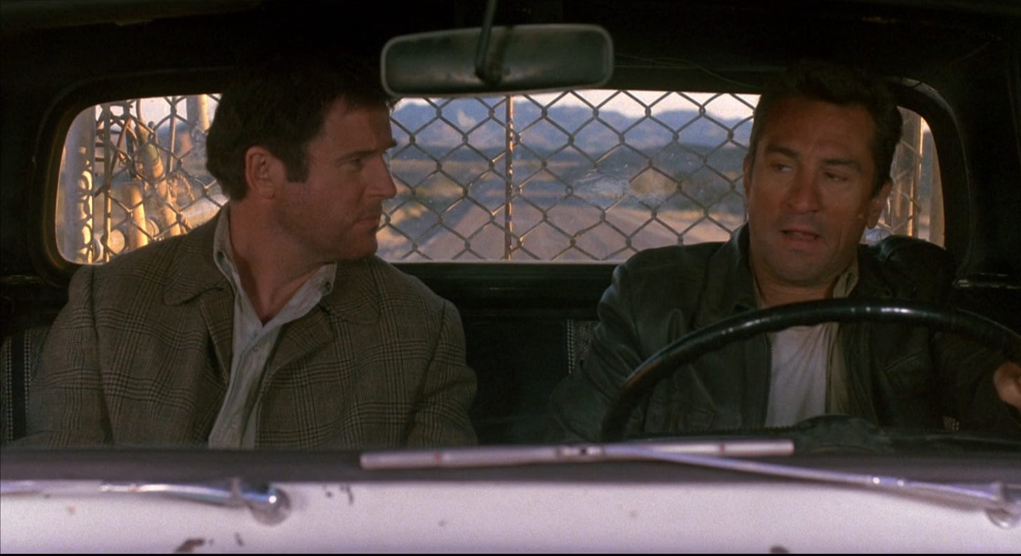For all of its expletives, Midnight Run marked a shift in tone from the gritty, pulp edge Martin Brest brought to Beverly Hills Cop–a movie conceived in the late seventies and drawn up for Sylvester Stallone–for a softer approach that should’ve been at home in the late eighties, with a redeemable and ultimately lovable Robert DeNiro. It’d take eleven more years for audiences to discover that with the right material, DeNiro was funny, Analyze This (1999) and Meet the Parents (2000) opening the floodgates for sequels and a succession of roles where instead of creating a character, DeNiro was paid to parody the tough guys he’d played in far better films. Had it been a hit, Midnight Run might have initiated the actor’s self-destruct sequence a decade earlier. Its quality is marginal. The FBI agents are written as the Keystone Kops, while the mobsters gunning for Mardukas are even stupider, the gang who can’t shoot straight. The climax, in which Walsh attempts to incriminate the crime boss responsible for his ouster from the Chicago PD and the dissolution of his marriage, is howlingly bad movie material, unfolding at McCarran Airport with the FBI observing the action in plain view.