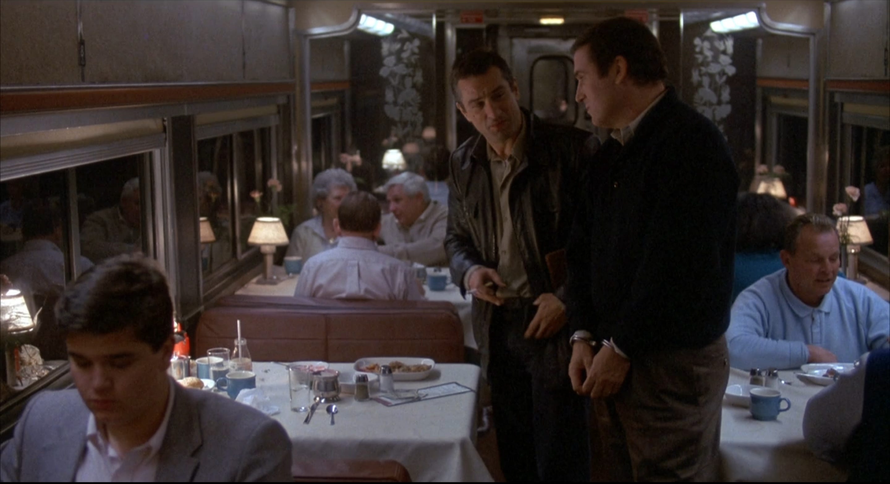 Staring at a production budget of $31 million, Tanen canceled the film. Brest called Casey Silver, the former director of development for Simpson/ Bruckheimer who was now VP of Production at Universal Pictures. Silver sold his boss, new studio chairman Tom Pollock, on Midnight Run, and within one day of being put in turnaround, Universal picked it up. With John Ashton, Yaphet Kotto, Dennis Farina and Joe Pantoliano joining the cast, filming commenced in October 1987. The G.M. Hoff building in downtown Los Angeles served as Moscone’s office, and Grand Central Market where the bail bondsman meets Walsh. Exteriors for the Duke’s apartment were filmed in Brooklyn Heights, New York. Grand Central Station was used as a major location, as were McCarran International Airport in Las Vegas for the climax and Los Angeles International Airport for the final scene. The Chicago Bus Station, the Amtrak station in Niles, Michigan, the town of Globe, Arizona, and the Blue Angel Motel in downtown Las Vegas were also used. The scene where Jack and Mardukas are swept into a river was planned for Salt River Canyon in Arizona, but after DeNiro barely survived his plunge, the production went to New Zealand, where waters were warmer in January, for Grodin to fall into the drink. Reports indicated the film went over budget by $9 million.
