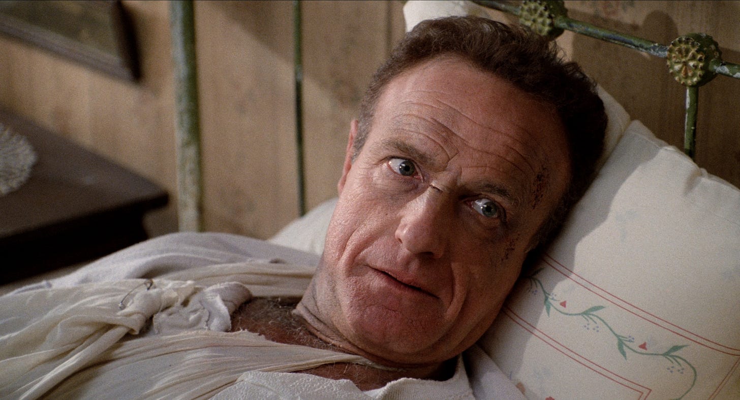 The film adaptation turns mostly on suspense. Like a rat in a maze, Paul Sheldon realizes that he can’t outmuscle or outrun Annie, can’t outsmart her because she knows everything about him ever printed, and can’t out reason a psychopath with several victims to her credit. Kathy Bates offers no tells, hints at no exploitable weaknesses with Annie, until Paul discovers one that should bring joy to the heart of any book lover: the power of fiction. James Caan is equally potent. His casting brings certain qualities that Warren Beatty might’ve–his situation rendering his athletic prowess or way with women useless–but unlike Beatty, Caan makes Paul relatable, a guy from our neighborhood who goes step by step trying to escape his predicament just like we would. Barry Sonnenfeld, who’d photographed Raising Arizona (1987), Throw Momma From the Train (1987), When Harry Met Sally … and Miller’s Crossing (1990) before making the rare leap from cinematographer to director, does a yeoman’s job pushing the camera into Bates’ or Caan’s face at moments of anxiety, or exploiting detail—like a keyhole, a ceramic penguin, or a match—unlike King’s novels, which are often overloaded with stuff that can be easily tossed. As directed by Reiner, there’s not an ounce of fat on Misery, and he matches King’s sense of humor by using Annie’s favorite musical artist, Liberace, throughout the soundtrack.