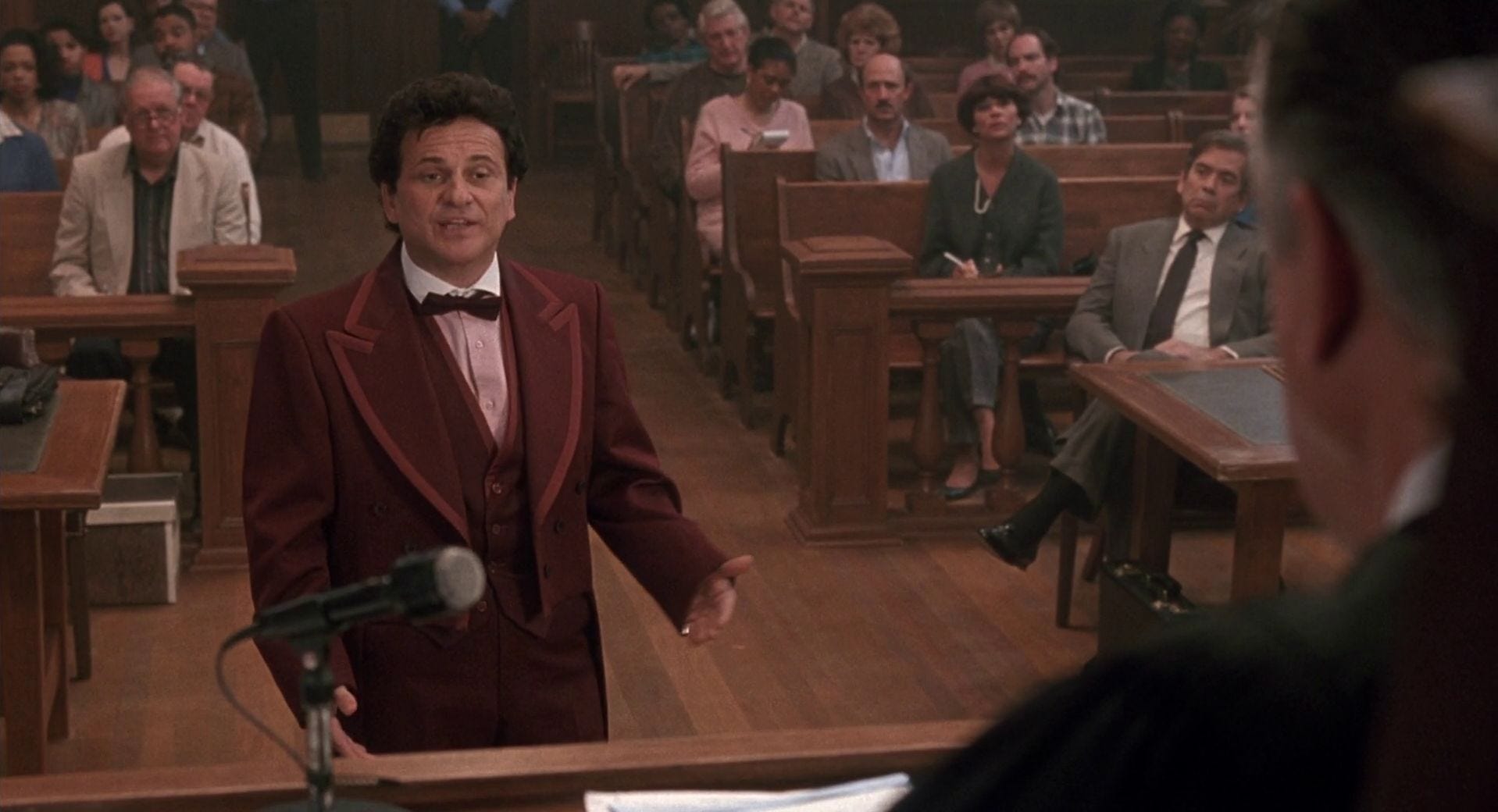 My Cousin Vinny is a courtroom movie for the layman because the main character is a layman, and we’re learning how to defend a capital case with him. We learn what an arraignment is, how to depose witnesses, and what happens if a judge holds an attorney in contempt. We learn about disclosure, and how the prosecution and defense are more often than not simply members of the loyal opposition: cordial and clubby, considering they work together every day. Released six weeks before the 1992 Los Angeles riots and Rodney King’s televised plea for everyone to get along, My Cousin Vinny, without trying to solve any major societal problems, offered its own solution. While Dale Launer’s writing is masterful in the way it intersects its relationship comedy with a movie about legal procedure, Lynn deserves credit for the performances–Joe Pesci and Marisa Tomei pop with movie star energy, while Fred Gwynne, perhaps cast by virtue of being a foot taller than Pesci, alternates between moments of grave solemnity and lovable sympathy–but also for the film’s heart. A British citizen, Lynn doesn’t paint northerners as good and southerners as bad. They’re Americans as far as he’s concerned. In an example of how the film’s most pleasurable laughs are built, Vinny finally gets a good night’s sleep in Alabama by spending the night in prison, where instead of a steam whistle, hogs or a freight train, the sounds of New York comfort him. My Cousin Vinny doesn’t pretend people are all alike, but imagines that we’re capable of engaging in debate in which both parties win.