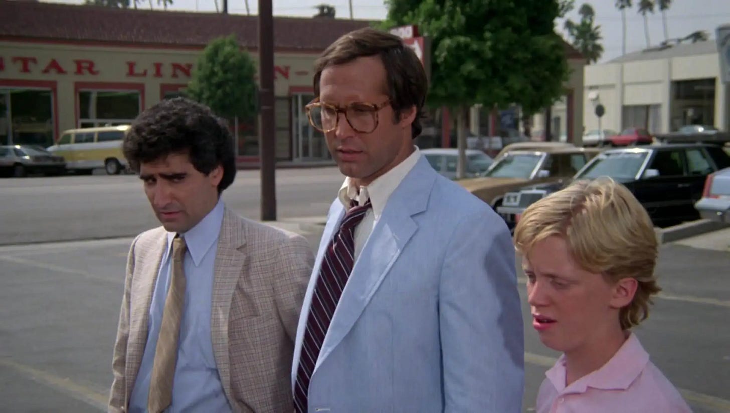 Producer Matty Simmons’ first stop with Vacation ‘58 was Paramount Pictures, whose president of production Jeffrey Katzenberg struggled to connect with the episodic nature of the material and passed on it. Simmons found an advocate with Mark Canton, an executive VP at Warner Bros. who’d worked with Animal House co-writer Harold Ramis on his directorial debut, Caddyshack (1980). Canton wanted to make a National Lampoon movie at Warner Bros. and sold his bosses Robert Daly and Terry Semel on optioning Vacation ‘58 as that movie. Simmons commissioned John Hughes to adapt his short story into a screenplay, which according to another legend, he completed in four days too. Canton passed Hughes’ script to his choice of director, Harold Ramis, who thought it very good. The patriarch in Hughes’ original story and script was similar to the dad in A Christmas Story (1983), a grandiose buffoon at times but given to losing his temper, quite intimidating to a boy. The first actor Ramis thought of was Chevy Chase, who he’d directed in Caddyshack. Chase had graduated from the debut season of Saturday Night Live in 1976-77 to play smug smart alecks in a number of comedies. His last three as the star–Oh! Heavenly Dog (1980), Under the Rainbow (1981) and Modern Problems (1981)--had been abysmally reviewed and, at best, marginally successful at the box office.