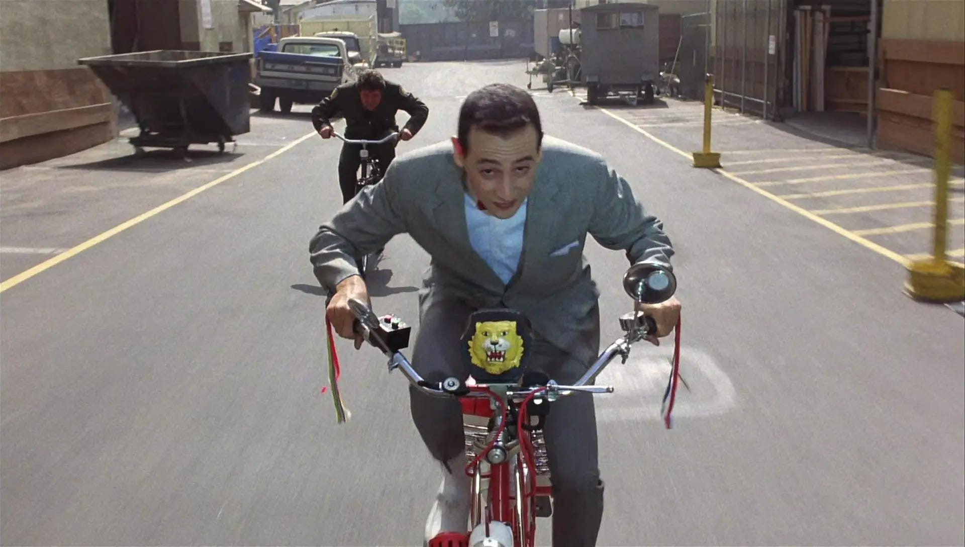 Reubens would recall that their early template was one of his favorite movies, Pollyanna (1960), the Walt Disney production in which Hayley Mills played an orphan who reintroduces joy to the buttoned-up town she settles in. Working in a bungalow on the Warner Bros. lot, the writers substituted Pee-wee for Pollyanna and got halfway through a script. Reubens was walking with Abramson and mentioned that everyone at the studio was riding on a cool bicycle except him. A week later, Reubens reported to work to find a bike parking space reserved for Pee-wee Herman and his own 1947 Schwinn Racer, orange. Inspiration struck. Reubens & Hartman & Varhol began volleying ideas for a completely new script, one in which Pee-wee loves his bicycle more than anything in the world and when it’s stolen, sets off in search of it. Instead of changing people he’d meet in a town, Pee-wee would change those he met on the road. Six weeks later, they had a script. Reubens had embarked on a 22-city weekend tour of what was billed as The Pee-wee Herman Party, a multimedia show that included an industrial film about personal hygiene, a Pee-wee short film (Pee-wee Goes Hawaiian) and musical performance (the song, “I Know You Are But What Am I?”) Using ticket sales to bolster their case for a movie, Abramson handed Warner Bros. executives a copy of Pee-wee’s Big Adventure as the tour closed at the Universal Amphitheatre in L.A. The studio agreed to greenlight the picture, albeit at what was even then considered a low budget ($4 million) and contingent on director approval.