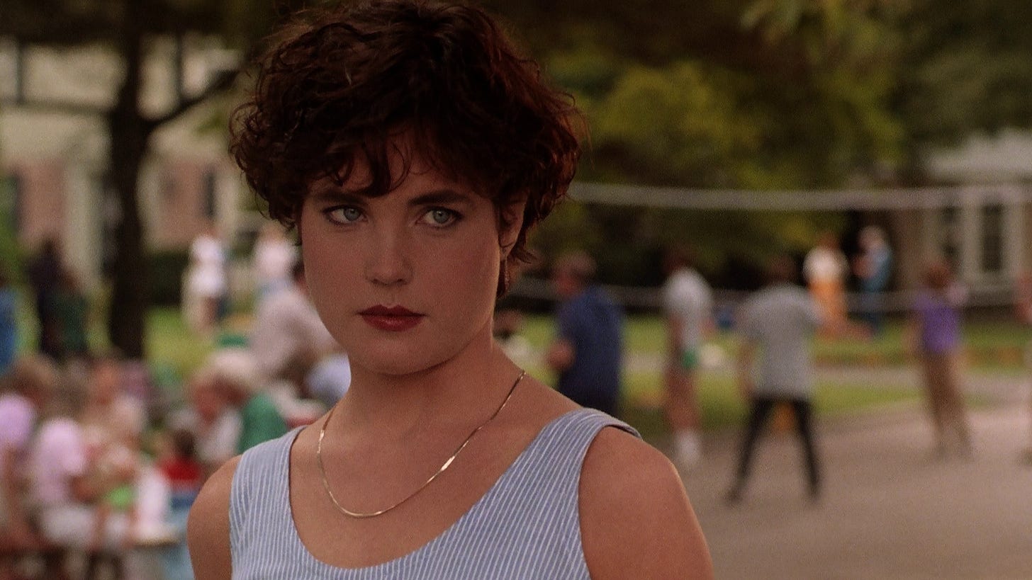 McGovern isn’t allowed a line of dialogue for the first ten minutes of the picture and as another stock character–the wife–isn’t present as much more than an exotic animal being fostered by Bacon’s character. Even as a story told strictly from the husband’s point of view, it’s missing scenes showing us how much he loves his wife or where they struggle. Instead, other characters tell us this. Editor Alan Heim–who cut Network (1976) and All That Jazz (1979)--was responsible for working with Hughes and the picture is a wreck. In one moment, Bacon’s neighbor emerges from his garage wearing Italian cycling gear, never to appear again or form a friendship with the new guy next door, as if the rest of the cyclist’s scenes were cut.
