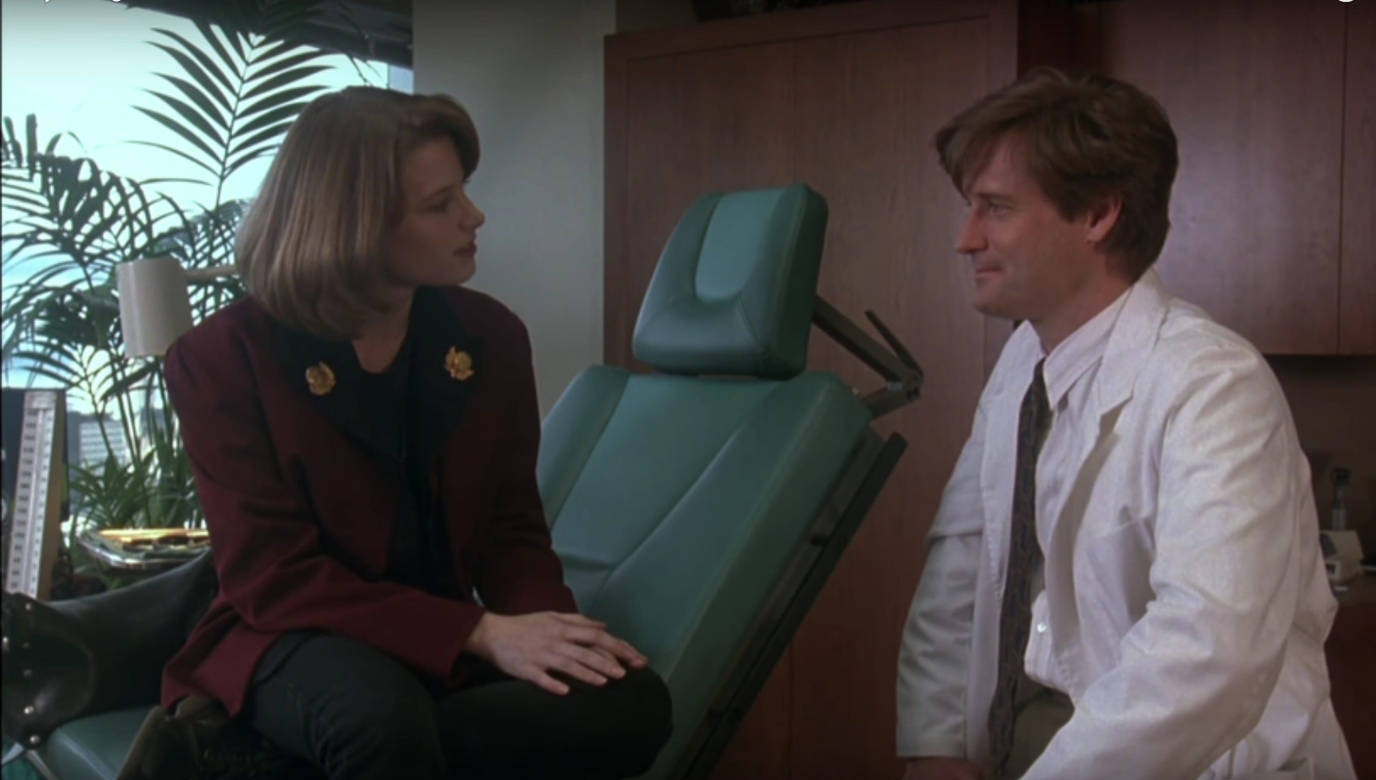 Top-billed Bridget Fonda plays the wholesome blonde who moves to the West Coast and develops googly eyes for the first singer who returns her gaze. She’s a real person, but isn’t interesting. Her character makes a connection with a gentle plastic surgeon (Bill Pullman, entering a cycle where he’d play the nice guy who the heroine ditches for someone exciting), but instead of inviting the doc to the club to walk on the wilder side, she goes back to mooning over Cliff, who in turn would’ve been a more compelling character coming to terms with his mediocrity, forced to figure out what comes next for him. Crowe isn’t tough enough on his characters, as if he was afraid they wouldn’t want to hang with him anymore. Singles is at its best in its details. There’s the earnestness of Steve, who believes he can solve traffic congestion in our times if Seattleites would just buy into a supertrain, to which they respectfully reply, “I love my car.” Campbell Scott gets the best line in the movie, when Kyra Sedgwick’s character asks what took him so long to come back to her: “I was stuck in traffic.” By writing with wit and insight about people coming through his living room, Crowe can’t be faulted for perpetrating a cash grab. He’d narrow his focus and write characters with more passion and purpose in his next film, Jerry Maguire (1995).