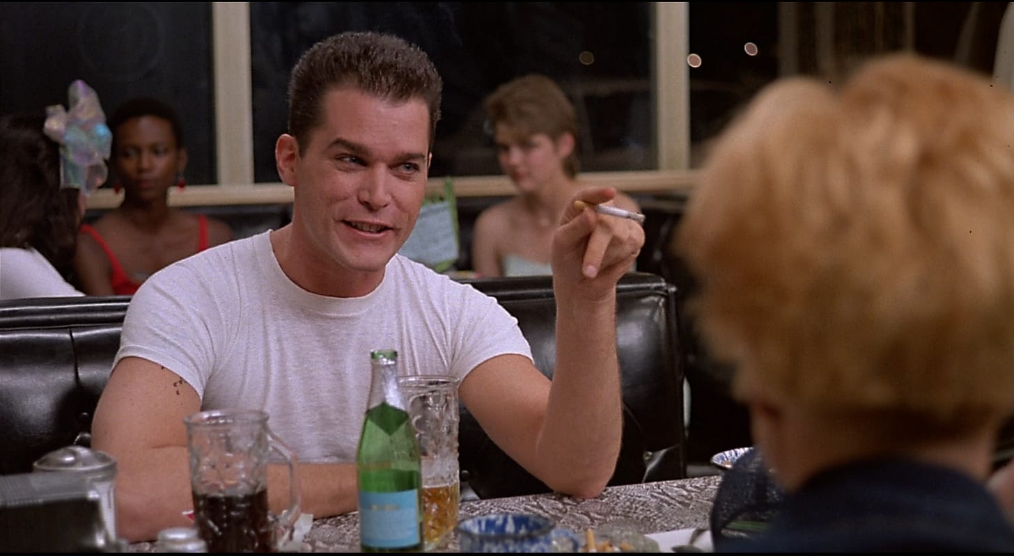 Reaching for an antagonist, Something Wild swaps the sexual chemistry between Griffith and Daniels for the magnetism of Ray Liotta, who not only redirects the movie into a thriller, but takes over. Liotta is the joker’s wild, and Demme allows his character to bring the movie to a halt, Audrey and Charlie frozen just like we are, tensed to see what Ray does next. The movie gets by on its spirit, but the script doesn’t work exactly, not even the moment Lulu meets Charlie. Frye seems to think Lulu is cruising for an outlaw, but if that was true, she would’ve either stuck with her ex-husband, or picked up a stockbroker. What attracts her to Charlie isn’t that he steals from hard-working waitstaff for a thrill, but that he’s gentle, pliable and married, making him easier to control. If she’d seen Charlie pay the bill another diner dashed on, that would’ve suited her needs. Demme shorts Griffith and Daniels well-deserved screen time by indulging too many eccentric characters with absolutely no impact on the story, like reggae artist “Sister” Carol East, who drops in like a troubadour to break the fourth wall and sing “Wild Thing” over the end credits. Sacrificing a bit of free spiritedness to develop the relationship between Audrey and Charlie would have made the film less disposable and more rewatchable.