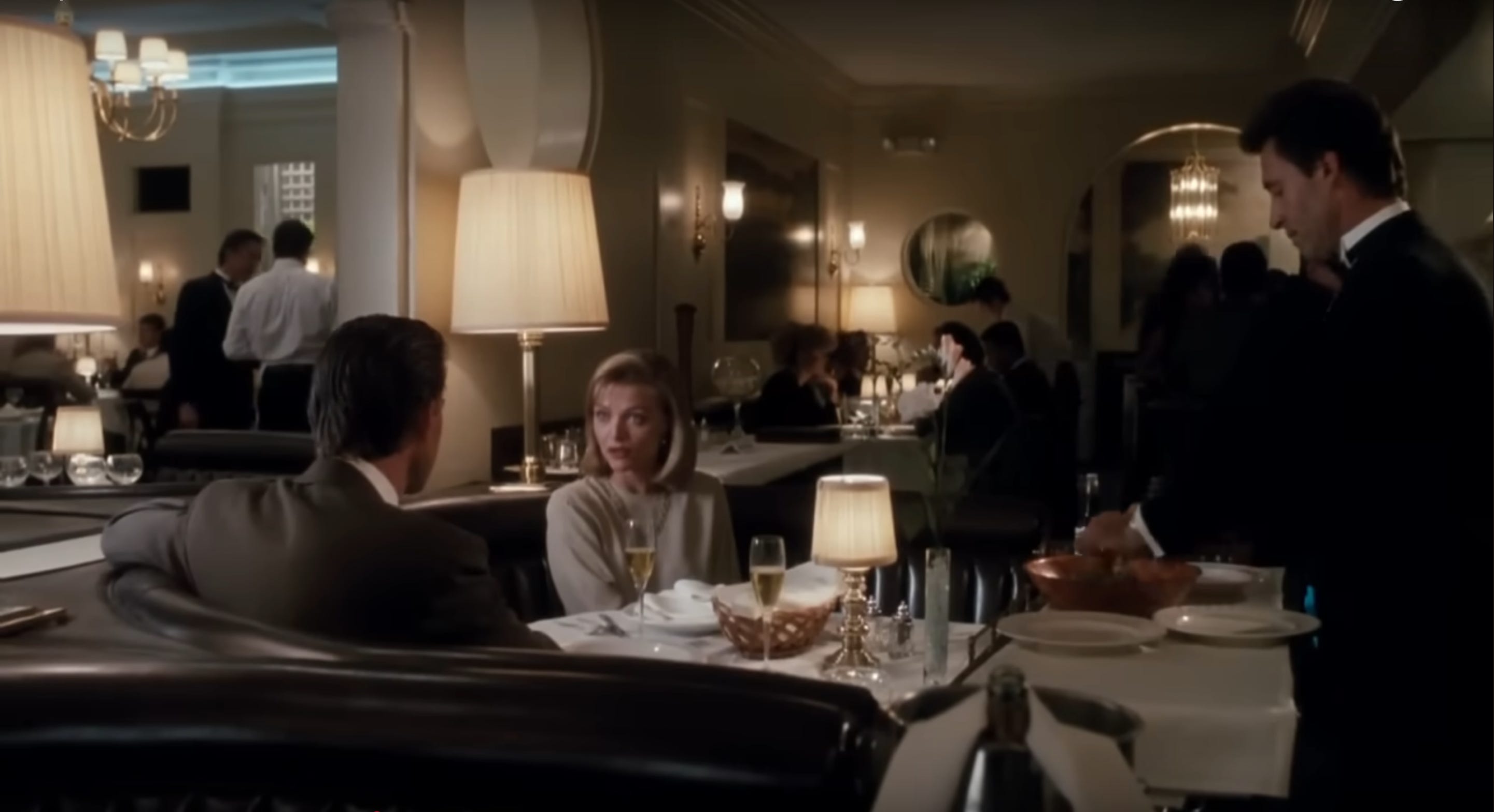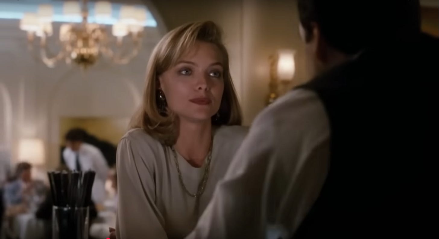 Scenes aren’t missing so much as Tequila Sunrise lacks scenes. The backstory for Gibson’s character is that he’s returning after serving two years in a Mexican prison, but we’re deprived of moments where we watch him readjust to civilian life or process his trauma, which would’ve made it possible to relate to him. He doesn’t even speak Spanish. Pfeiffer’s role is thankless, a hostess who two men corner at work and by virtue of her beauty, fight over. Russell’s character badgers Gibson over whether he’s out of the drug business, which demonstrates what a lousy detective he is, clueless as to whether even his childhood friend is dealing. The exciting version of this character would be on the street and wouldn’t have to bother Gibson with anything other than an arrest warrant or invitation to go surfing. The film’s energy levels up when Julia, playing a Mexican federale, makes his entrance, belting opera and giving the picture a desperately needed creative spark. The film Towne had in mind might have been one that mirrored his dining experience of watching business deals being made, alluring women working, and relationships falling through, but Tequila Sunrise doesn’t dramatize much of that. It doesn’t even look good, fumbling opportunities for neo-noir to settle for what often looks like a Red Lobster commercial, without the food.