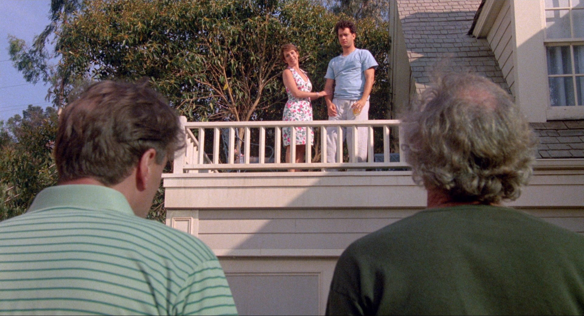 Instead, The ‘Burbs was shot on the Universal Studios backlot in Los Angeles, specifically, Colonial Street, the suburban facade which since moving to the south side of the lot in 1981 had been seen on television shows needing a suburban block: Simon & Simon, Murder, She Wrote, The New Leave It To Beaver. Rather than realism, the eerie familiarity of the location was exactly the feeling Dante wanted. Shooting commenced in May 1988, less than three months after Dante and Finnell were handed the script. The WGA strike had begun March 7 and would stretch to August 7 and during that time, The ‘Burbs was the only show filming on the Universal lot. An advocate of having the writer on the set, Dante gave Dana Olsen a tiny role as a police officer, the screenwriter barred by union regulations from taking writing jobs during the strike, but less policed when it came to issuing “suggestions” to anyone in earshot. Dante mostly took advantage of booking a superb cast for the same duration in the same location to shoot The ‘Burbs in sequence, allowing the actors to build their characters as filming progressed, more like a play than a movie.