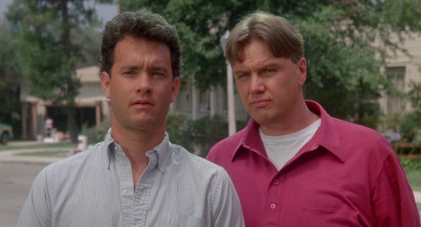 Writing in the New York Times, Vincent Canby quipped, “The movie is as empty as something can be without creating a vacuum.” Joe Dante carried that line around in his head for thirty years, joking that The ‘Burbs got the worst reviews since Mein Kampf. Its only competition Bill & Ted’s Excellent Adventure (1989), a comedy without stars that had been locked away in a vault for a year, The ‘Burbs opened #1 at the box office its first two weekends in release. It would spend only four weeks among the top ten grossing films in the U.S., fair to middling word of mouth hurting its commercial longevity. Viewers who discovered the movie on videocassette or cable television—often in the ‘burbs themselves—embraced it. Along with Gremlins and Innerspace, the latter of which was also revived by steady rotation on HBO, The ‘Burbs is the movie Dante is most often invited to discuss at retrospective screenings or asked about on podcasts, and with Splash and Big, the most popular movie Tom Hanks made during his first decade as a film leading man.