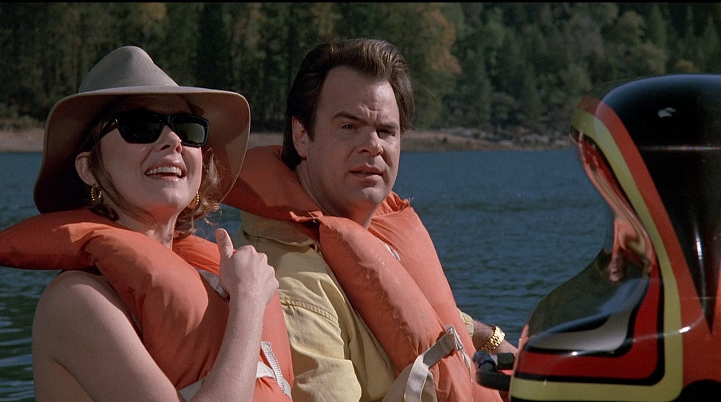 There are signs in The Great Outdoors that point toward a good movie. Hughes ignores these to drive us to territory we’ve been to before, and had a better time visiting. Having written both National Lampoon’s Vacation and National Lampoon’s European Vacation (1985), Hughes had runway for National Lampoon’s Country Vacation, maybe with Clark Griswold (Chevy Chase) losing his job and unable to take his family on another expensive summer trip, resorting to visiting Cousin Eddie (Randy Quaid) in the sticks, where his crass cousin-in-law is suddenly the more successful family man. Short of a Vacation sequel, there was a good movie here about the rivalry between brothers-in-law for the respect of the women and children in their families. Truth is overlooked for jokes in which the families are pestered by every wild animal in the lake district–racoons, a bat, a bear–or Aykroyd and Candy trying to make outdoor activities like water skiing or horseback riding funny. Playing a father isn’t Candy’s strong suit. A wonderful actor who exudes likability but is only as funny as the script he’s working from, Candy had marginally better material and a good director (Carl Reiner) in the same movie as this one: Summer Rental (1985), in which Candy played an air traffic controller who takes his family on a beach vacation.