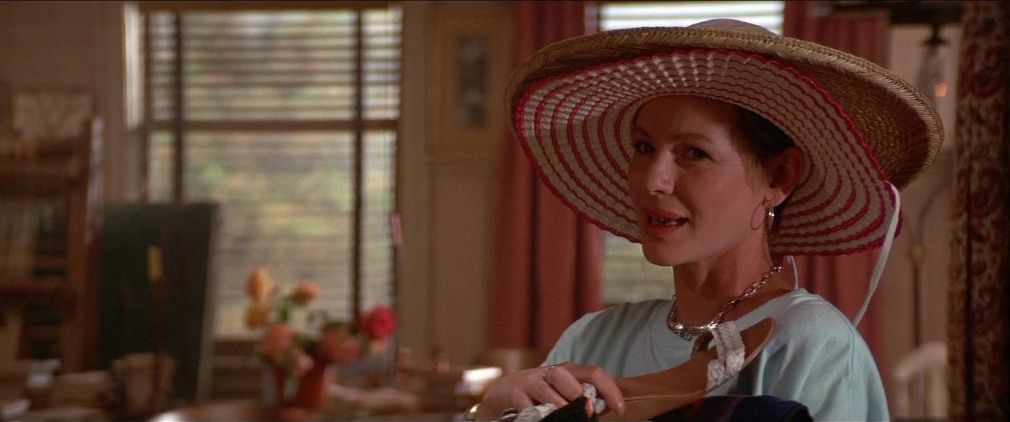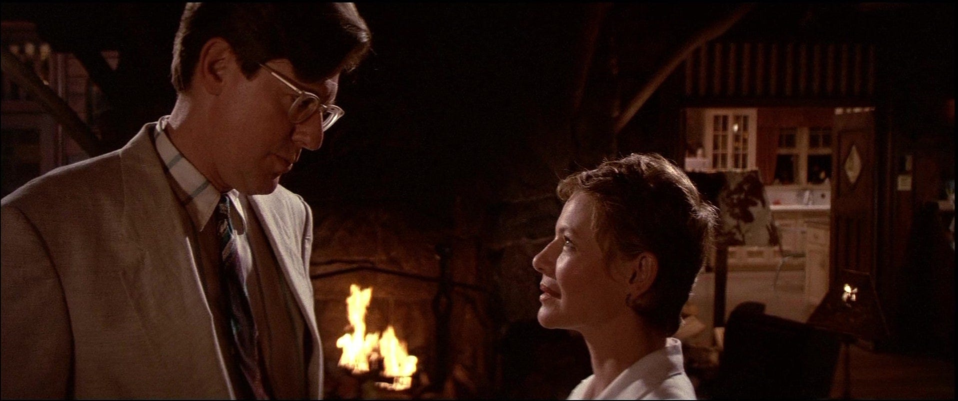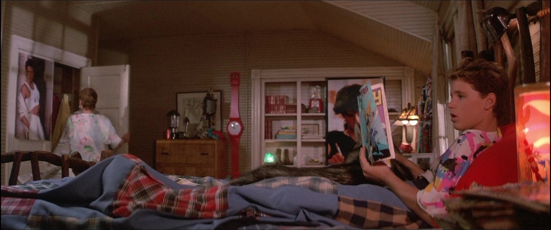 Jeffrey Boam’s strong suit as a writer is action, and when his action doesn’t inform character, not much else but the costuming does. The same goes for Jami Gertz, whose character could be much more complicated than she is. How she and the boy in her care came to be initiated into the gang rather than serve as food is a movie in itself, and Patric and Gertz achieve sexual chemistry so powerful that their hazily lit sex scene proves anti-climactic. Wiest is a delight, particularly in her scenes with Herrmann, cast as a single man moving at innately perfect speed for a vulnerable divorced woman. Even the old fart played by Barnard Hughes deserves more screen time, especially after his closing line, which makes us re-evaluate the entire movie we thought we were watching. Schumacher does such a tremendous job casting and balancing his third consecutive ensemble –begun with the comedy D.C. Cab (1983)--and getting the wardrobe, hair and makeup perfect in genres that typically coast on those details that his questionable taste stand out. Chief among these is the appearance of topless and oiled-up sax player Tim Cappello for the concert scene. Cappello is a perfectly acceptable vocalist and saxophonist, but Schumacher is way more enthralled by his act than the hippies in Santa Clara–who’d be thirsting for rockers like Aerosmith–would be. Cappello’s beefcake antics are allowed to nearly derail the best scene in the film, Michael and Star laying eyes on each other for the first time (Cappello’s cover of The Call’s “I Still Believe” is an evocative song for the lovers). By thinking beyond horror or comedy, The Lost Boys classed up and reinvigorated its genres, and as a sum of its parts, is the most consistently entertaining vampire picture of its era.