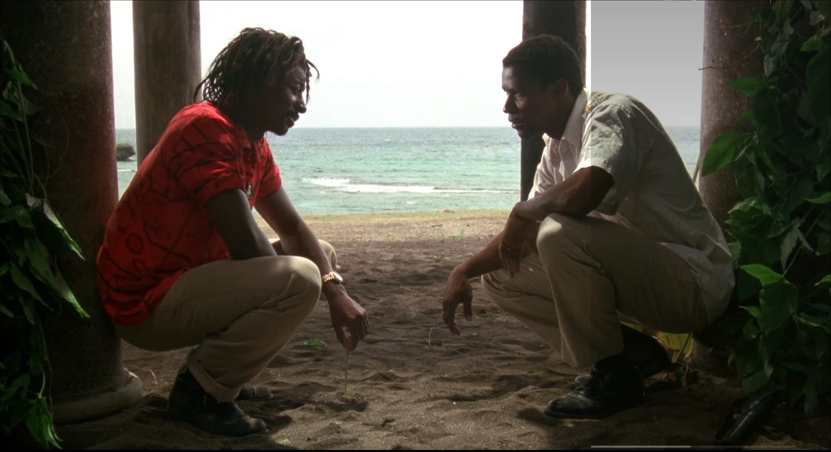 In one of the film’s whimsical touches, the cop shop Quinn operates out of has its locker area situated in front of the holding cells, exposing officers to the commentary of their guests. That this is never put to service by the plot might be taken as part of the film’s idiosyncratic charm, but Quinn–who attended college in the U.S. and trained at the FBI Academy in Quantico–isn’t permitted a reaction to any of this, his American tailoring skills never forced to adjust to the fabric of island life. Even the casting of Robert Townsend–between starring in, co-writing and directing Hollywood Shuffle (1987) and The Five Heartbeats (1991)--as Maubee is wobbly. Townsend might’ve worked okay as Quinn, a likable police chief trying to please everyone, but as a romantic outlaw, Denzel Washington was better suited to play Maubee. Carl Schenkel does his best with the resources available to bring the picture an off-beat visual sense, but his are superficial skills that fail to illuminate life in the Caribbean. The Mighty Quinn has the feeling of a movie that was more difficult to make on location than the producers or director might have anticipated. What made it on screen is pleasant, with good music and a stardom-making performance, but also more pedestrian than it could’ve been.