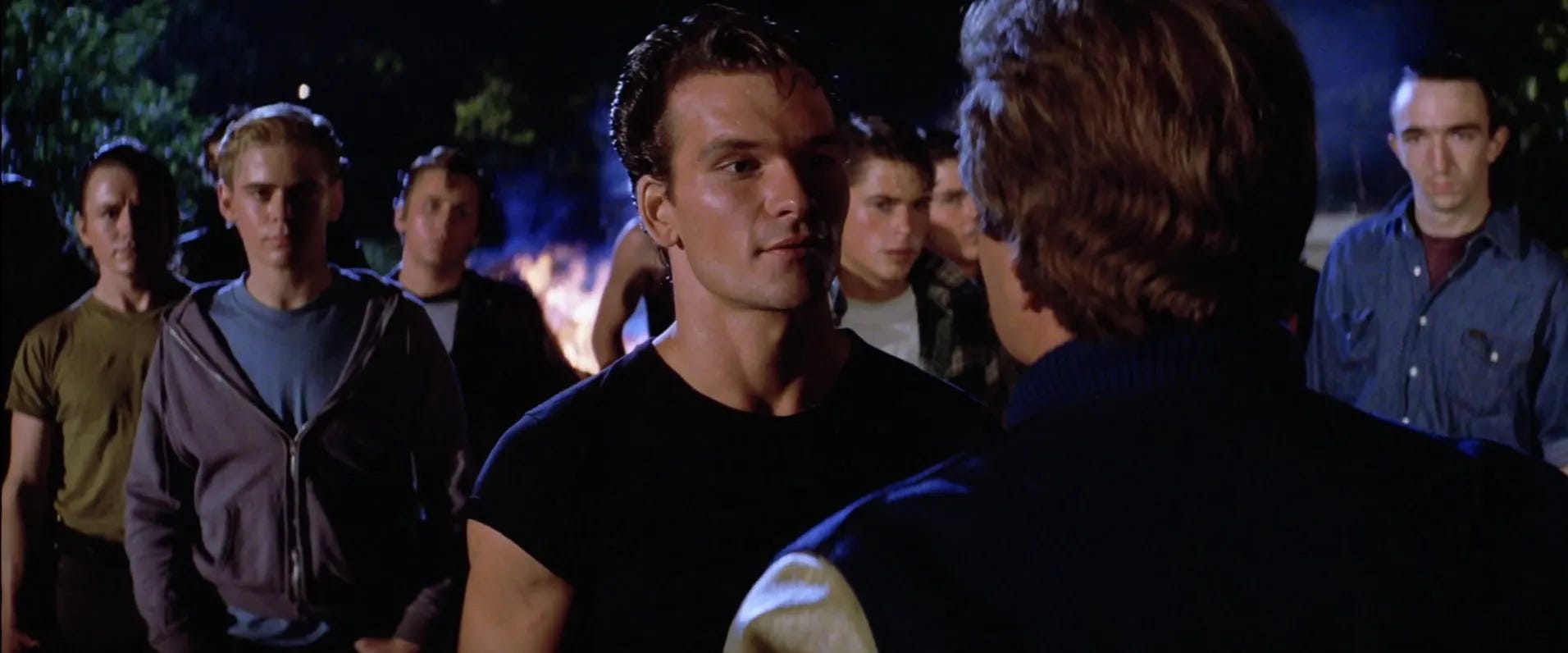 Coppola convened what became a mythic casting session in Los Angeles, with some sixty finalists broken into small groups to take turns performing different characters. Dennis Quaid remembers Kevin Costner, Mickey Rourke and Bruce Willis being there — none of whom would be cast — along with Matt Dillon and Tom Cruise who would, the latter of whom had one film role, in Taps (1980), to his credit. Kate Capshaw, Helen Slater and Catherine Mary Stewart vied for either of two roles for young women in the show. Like Dillon and Macchio, Fred Roos had Diane Lane on his radar, on the basis of a romantic comedy titled A Little Romance (1979) she’d starred in at age 13. Lane was cast as Cherry Valance, a redheaded cheerleader who becomes an intermediary between the Greasers and the Socs. On the basis of an exploitation movie Janet Hirshenson had cast titled Skatetown U.S.A. (1979), Roos had called a meeting with an actor/ dancer named Patrick Swayze he’d taken notice of in the roller disco movie. Hirshenson barely remembered Swayze, and now in his mid-twenties, he seemed too old for The Outsiders, but Hirshenson’s business partner Jane Jenkins sent her a tape of Swayze’s dancing and with the role of Darry still uncast, Swayze won the part.