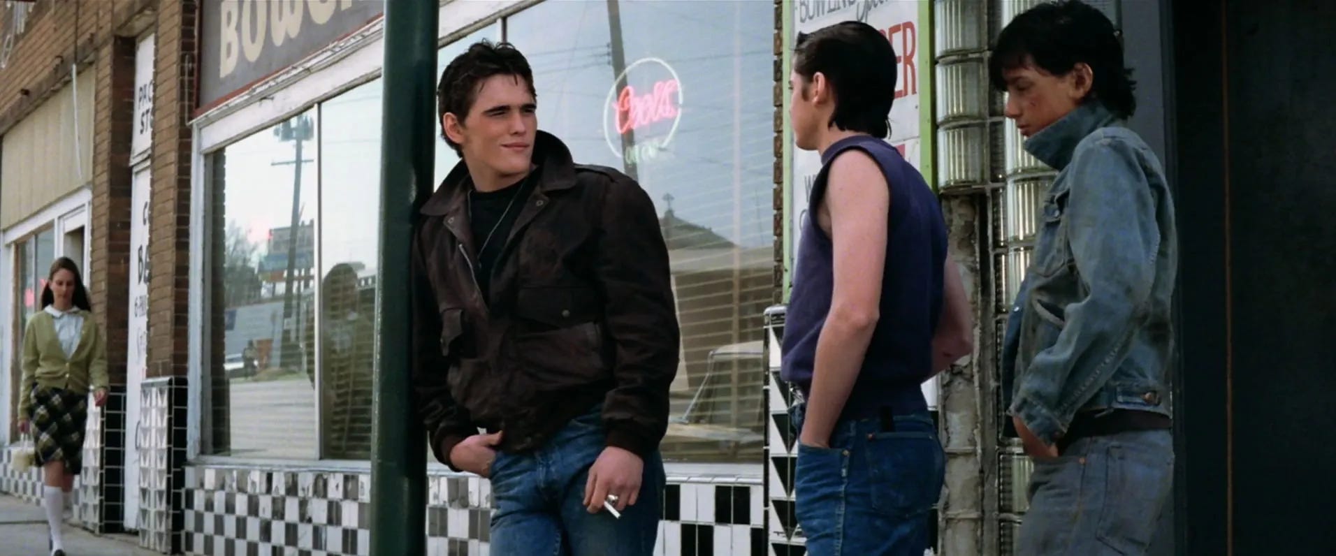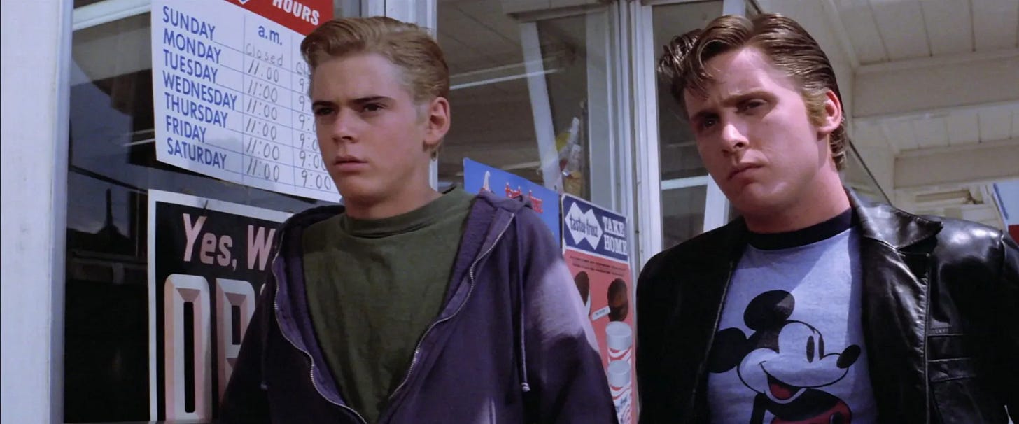 Janet Hirshenson had read a number of actors for roles in The Outsiders back when August Cinquegrana was directing. Several months later, Fred Roos phoned to let her know Coppola now directing and wanted to start shooting in a month. Coppola’s son Gio videotaped many of the auditions, the best of which Hirshenson and Gio would submit to Roos and the best of those the three of them would submit to Coppola. From the start, Roos had Matt Dillon and Ralph Macchio in mind. Dillon had been featured in three movies, all of them good — Over the Edge (1979), Little Darlings (1980), My Bodyguard (1980) — and had wrapped his first leading role, in an adaptation of S.E. Hinton’s novel Tex (1982), of all things. Macchio had been a cast member on the fifth and final season of the TV series Eight Is Enough. Dillon was seen by some as the closest embodiment to James Dean among his peers, while Macchio had a sensitive quality paired with credibility that his character could be a victim of bullying. (The appraisals of both actors would be on the money, with Dillon going on to star in The Flamingo Kid and Macchio in The Karate Kid in 1984).