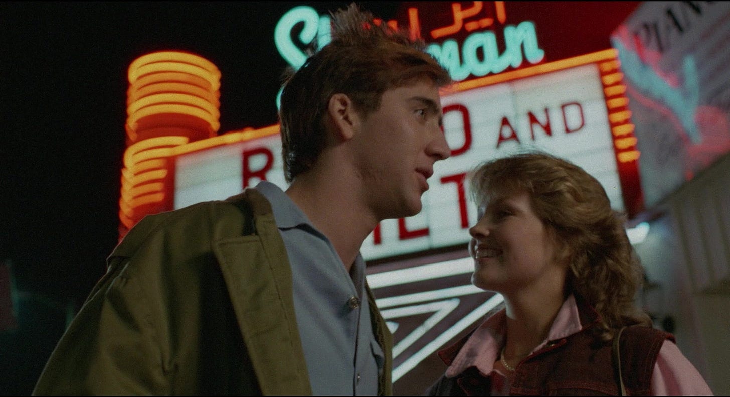 The departure Valley Girl made from the song “Valley Girl” is that Wayne Crawford & Andrew Lane and Martha Coolidge love their title character and those orbiting her. As played by Colleen Camp and Frederic Forrest, Julie’s parents–who run a vegan diner in the valley–have compassion, clean consciences, and want their daughter to explore, questioning whether this is proper parenting. They’re funny, and their daughter is a chip off the block, so excited to tell her friends about Randy that she can’t be bothered with her driver’s ed instructor (Richard Sanders from the sitcom WKRP In Cincinnati) or the road. In his debut as a leading man, Nicolas Cage plays Randy as sensitive and hyper focused. Without a screenwriter of Cameron Crowe’s caliber available to write dialogue like John Cusack had in Say Anything … (1989), Cage performs with his face and body. Two words – “Anywhere” and “Anything”--are all his character has to say to get Julie to leave the party with him. Coolidge understood her princess’s attraction to her punk, as well as what makes a downtown different from the suburbs, something John Hughes didn’t have a handle on in Pretty In Pink (1986). Coolidge’s finesse with documentary filmmaking and familiarity with the Sunset Strip make the distinctions between her star-crossed lovers more vivid. Valley Girl also boasts the superlative alt-rock and New Wave movie soundtrack, which in addition to The Plimsouls and Josie Cotton, turned “Electric Avenue” by Eddy Grant and “Melt With You” by Modern English into hits.